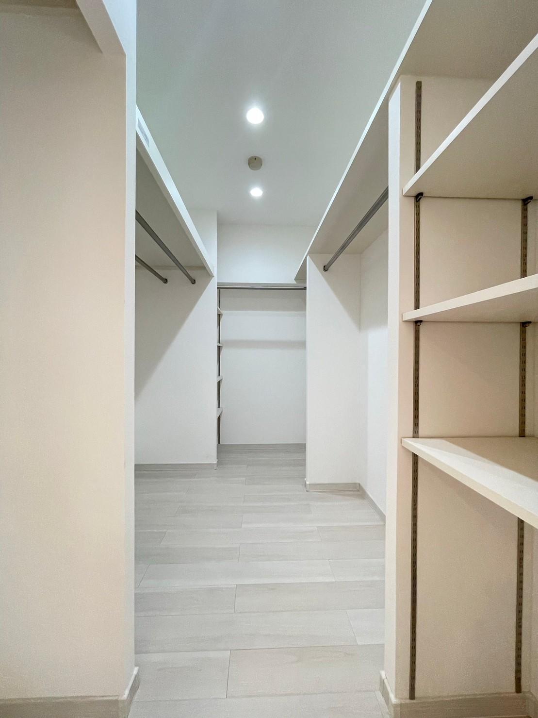 奥様のたくさんの洋服たちも余裕で入ります。またバック置きの棚もあるのでブティクのように並べて楽しめます。