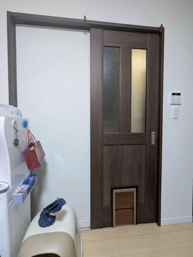 ドア本体交換を実施せず、コストパフォーマンス重視した形での施工です。 ドア框部分を大工の造作によって段差解消を行い、枠材を納めました。 猫ちゃんもお施主様も快適に暮らせる空間になったかと思います。 この度はご依頼頂きまして誠にありがとうございました。