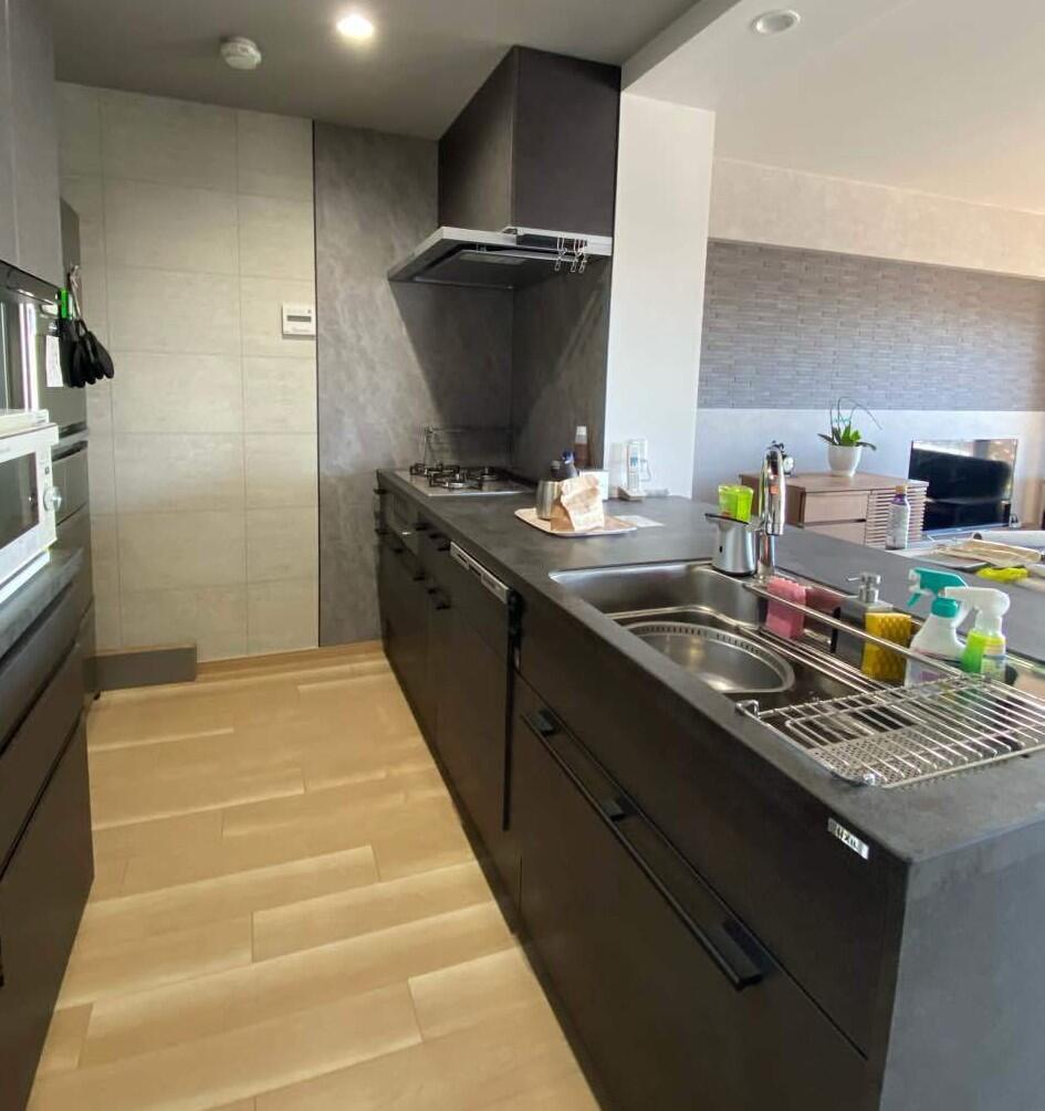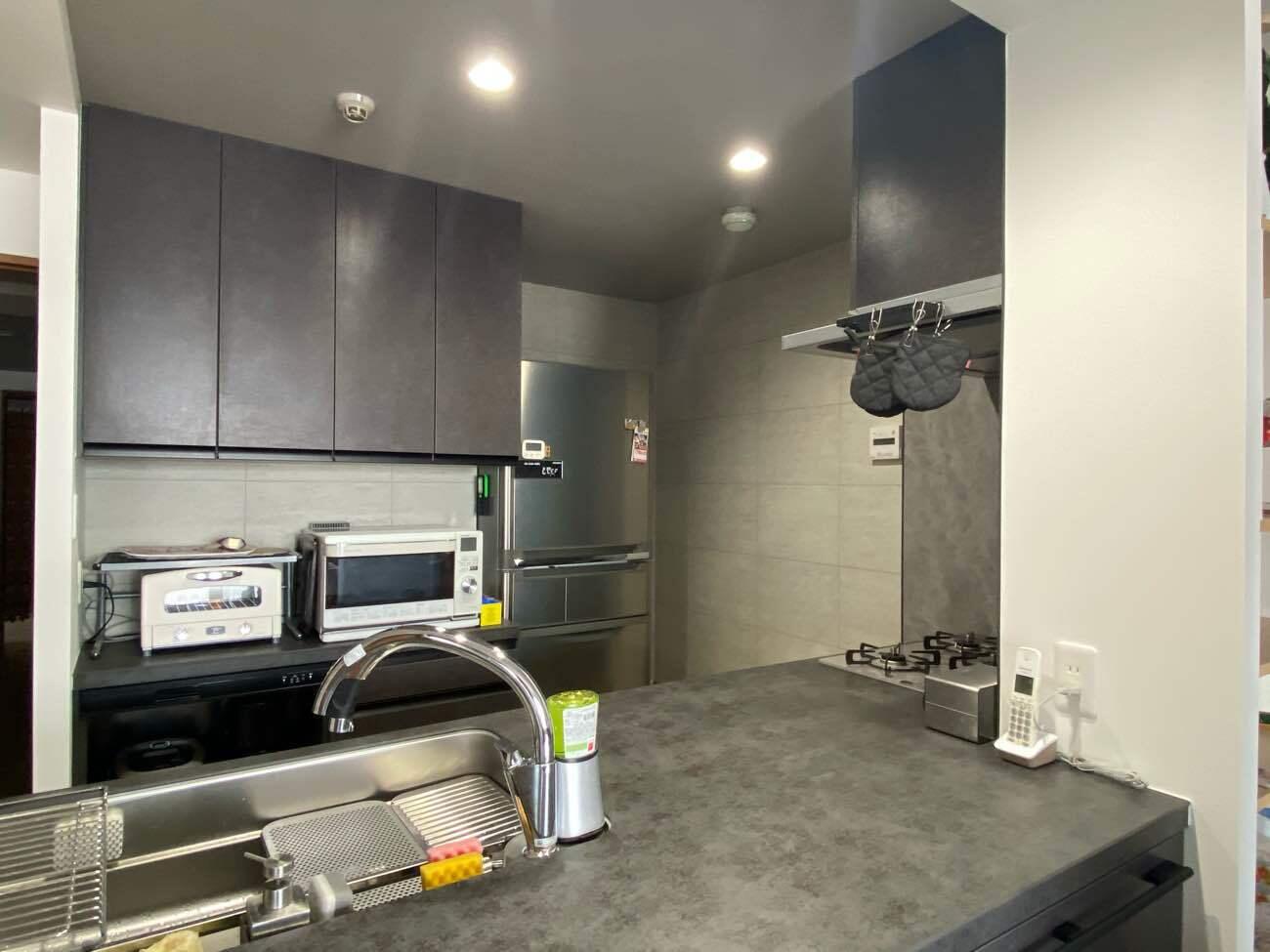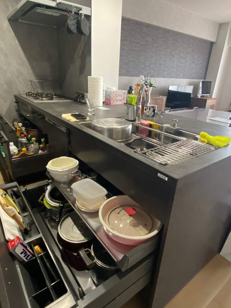 キッチンリビング側の収納もたっぷりですっきりした見た目でご満足いただけました。