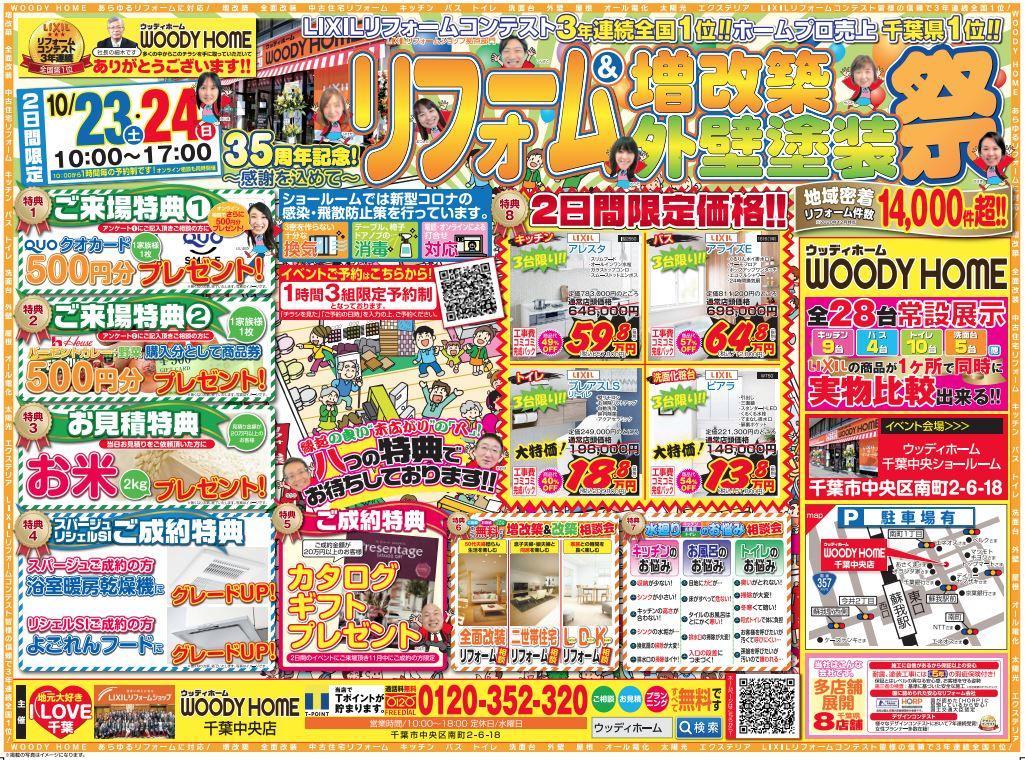 「ウッディホーム35周年!」「千葉市制100周年!」