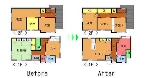 ①今の間取りが使いづらいので、使いやすい間取りに変更したい。 ②水廻りをやり替えたい。 このご希望を叶えるために、リノベーション工事を実施しました。