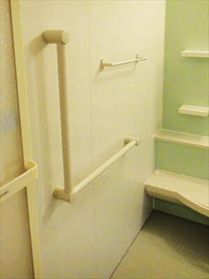 出入り口と洗い場にも追加で手すりを取り付けました。適切に配置することで、スムーズで安全な入浴をサポートします