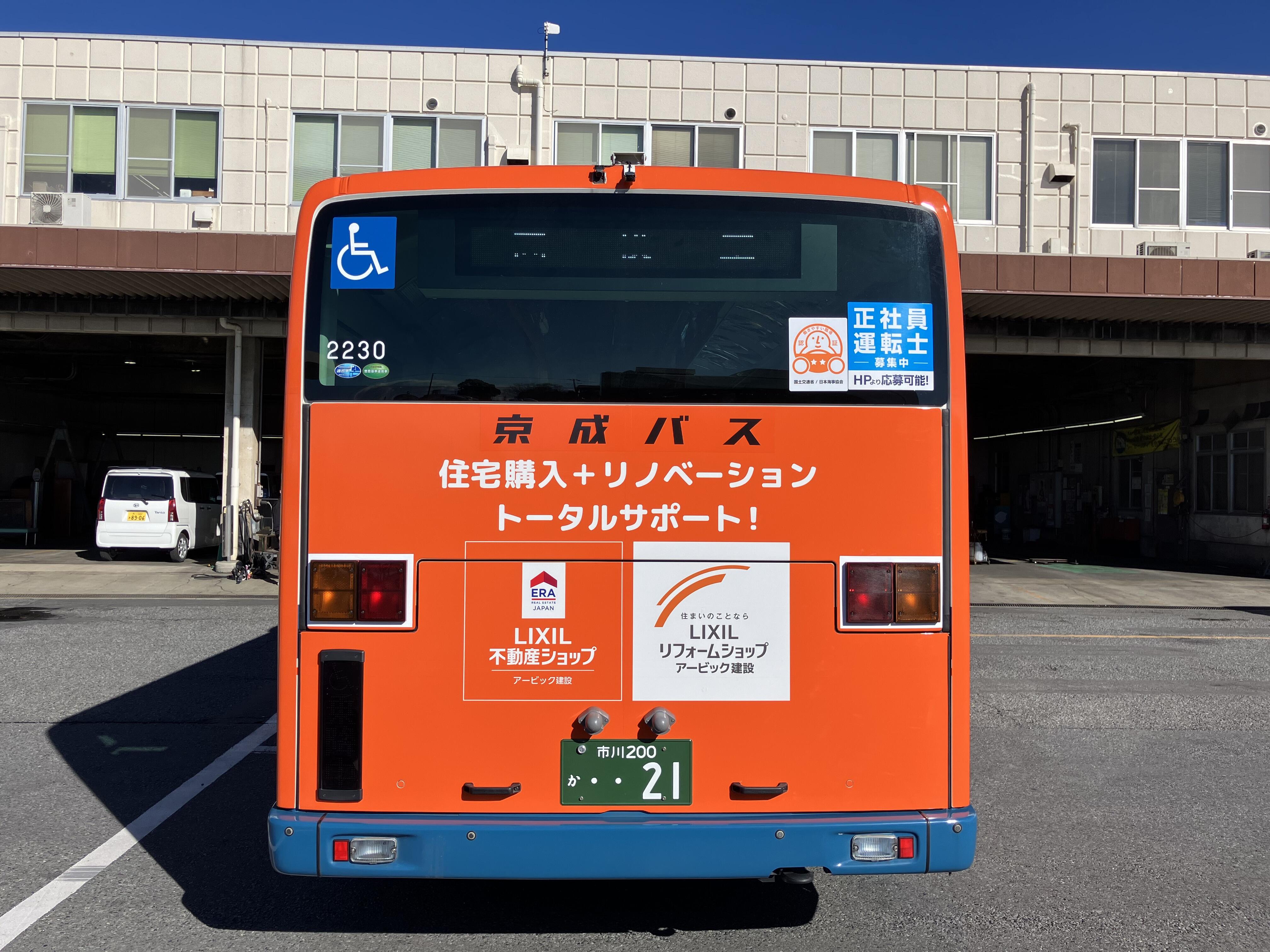 年始より京成バスさん・市川営業所管内にて、LIXILリフォームショップ×不動産ショップのラッピングバスが運行開始となっております!