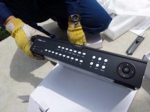 緊急時パソコンが無くても現地で確認できる様、モニターも設置しました。機器点検も容易です。録画機共、収納箱に保管。