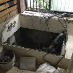 既存のタイル、タイル下地、土間コンクリートを解体します。