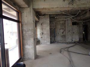 市川駅前、ビルインタイプの保育施設をフルリフォームします。工事着手前はほぼ完全なスケルトン状態からの着工になりました。
