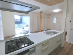 ダイニングの場所は広々としたLDKになりました。キッチンの天井を下がり天井のアクセントクロスで仕上げたので少しカフェのような一角になりましたが、壁が少ないので解放感のある空間になっています。ここは元々和室とダイニングキッチンになっていたので今までとは違い、仕切りが無くなりました。