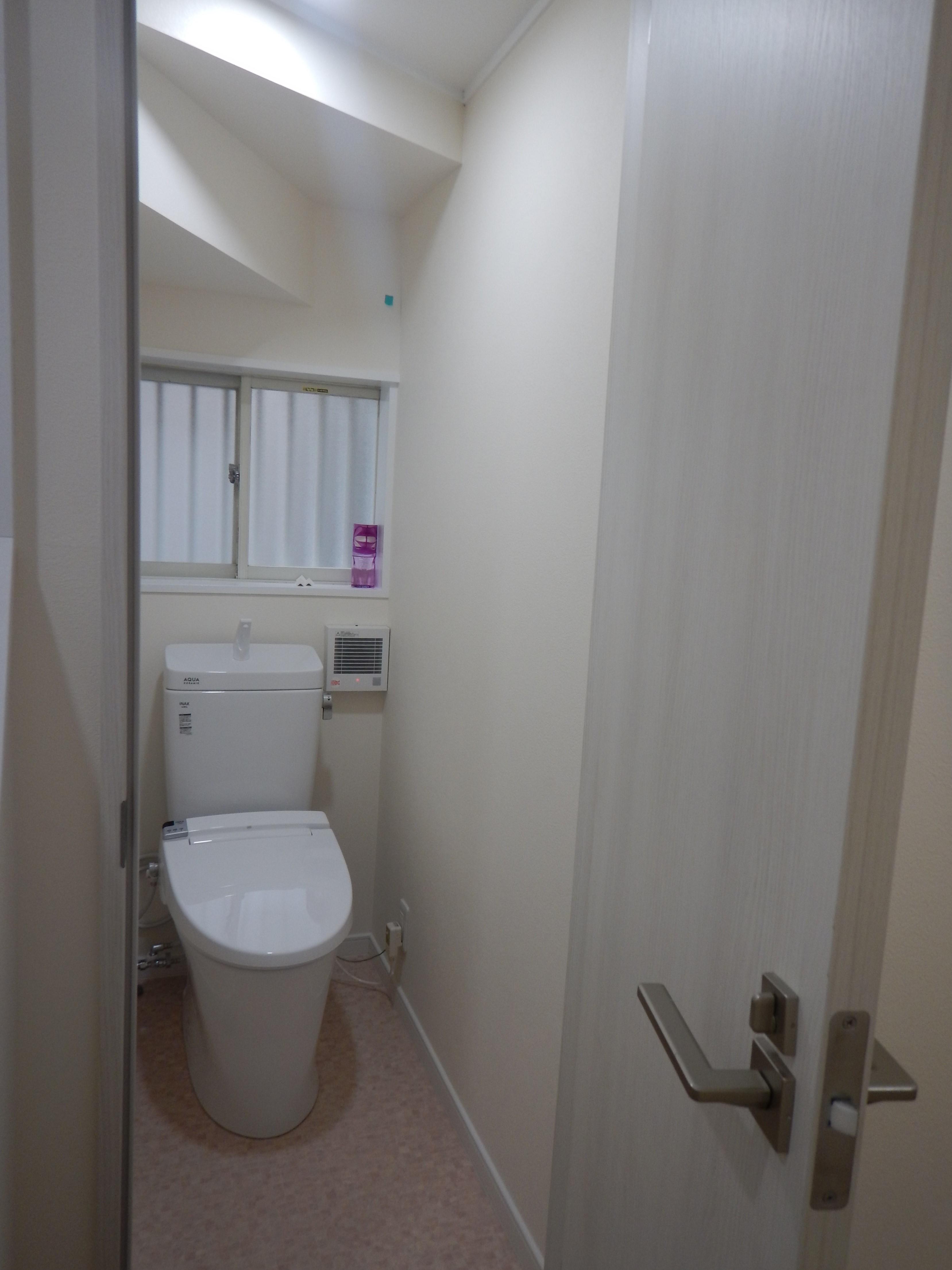 少し狭くて高さも無いですが、以前よりもトイレが奥にあるので扉との間隔が広くなりました。