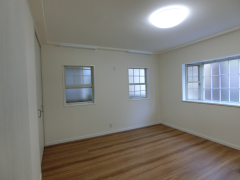 サッシの下までは壁が木材になってましたが、全体をクロスにして室内を広く感じるようにしました。