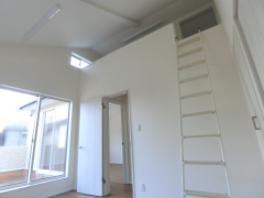 2階のロフト付き洋室です。収納箇所も白に統一しバルコニーへの窓が大きくなったので外からの採光も増え室内が明るくなりました。
