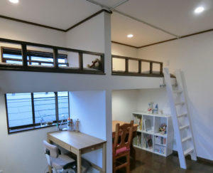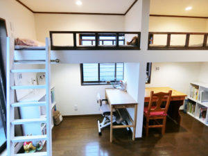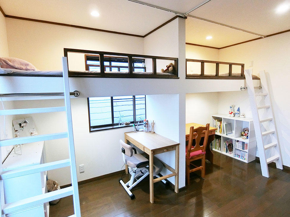 「大きくなった子ども達に個室を作ってあげたい」というご夫婦のご希望を叶えるために、造り付けのロフトベッドを設置し、スペースを有効活用したリフォーム事例です。
