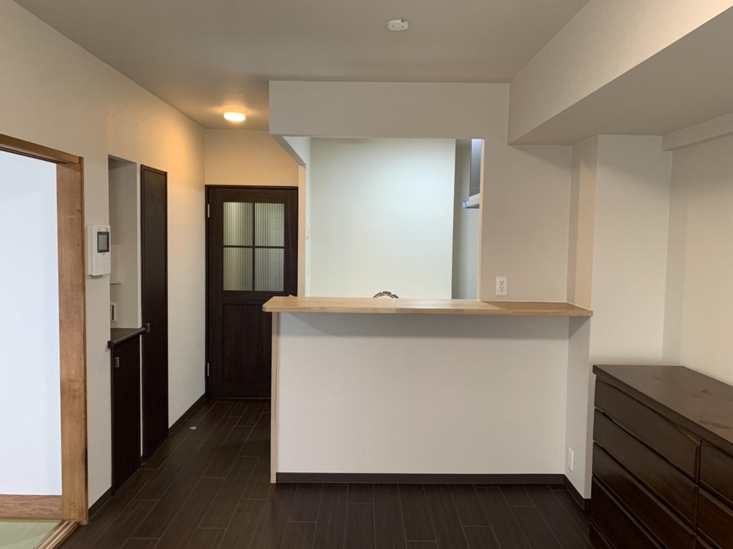 【ご要望】 閉鎖的なキッチンの壁をなくし、明るく開放的な空間にしたいとのことでお問い合わせをいただきました。