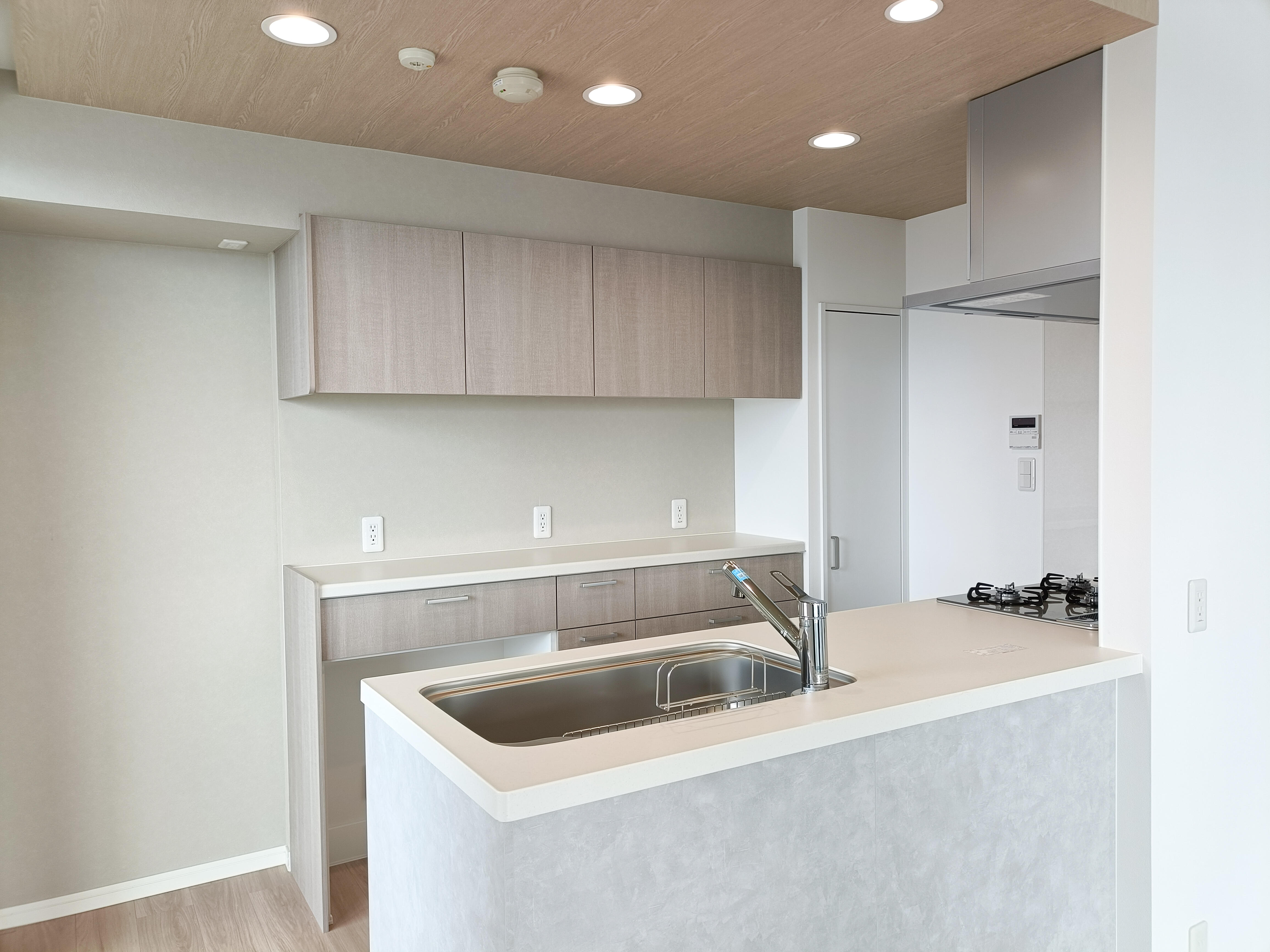 ご家族みんなにやさしい空間づくりをテーマに、やや暗い壁付けのL型キッチンが、家族を見守る明るくスタイリッシュな対面キッチンへと生まれ変わりました。