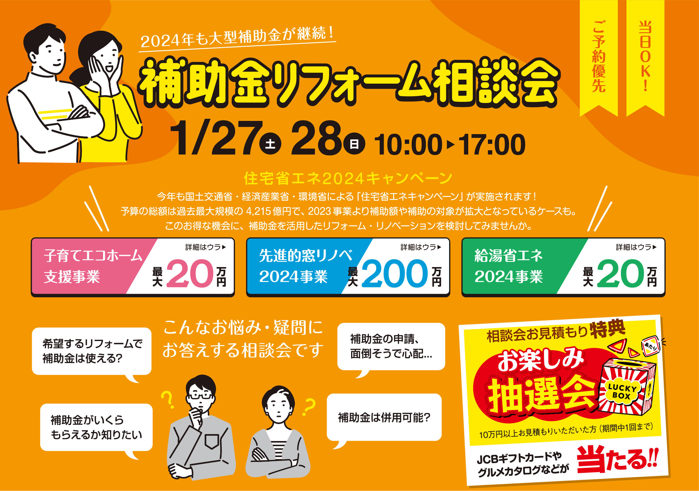 1/27(土)・28(日)に補助金リフォームの相談会を開催します!