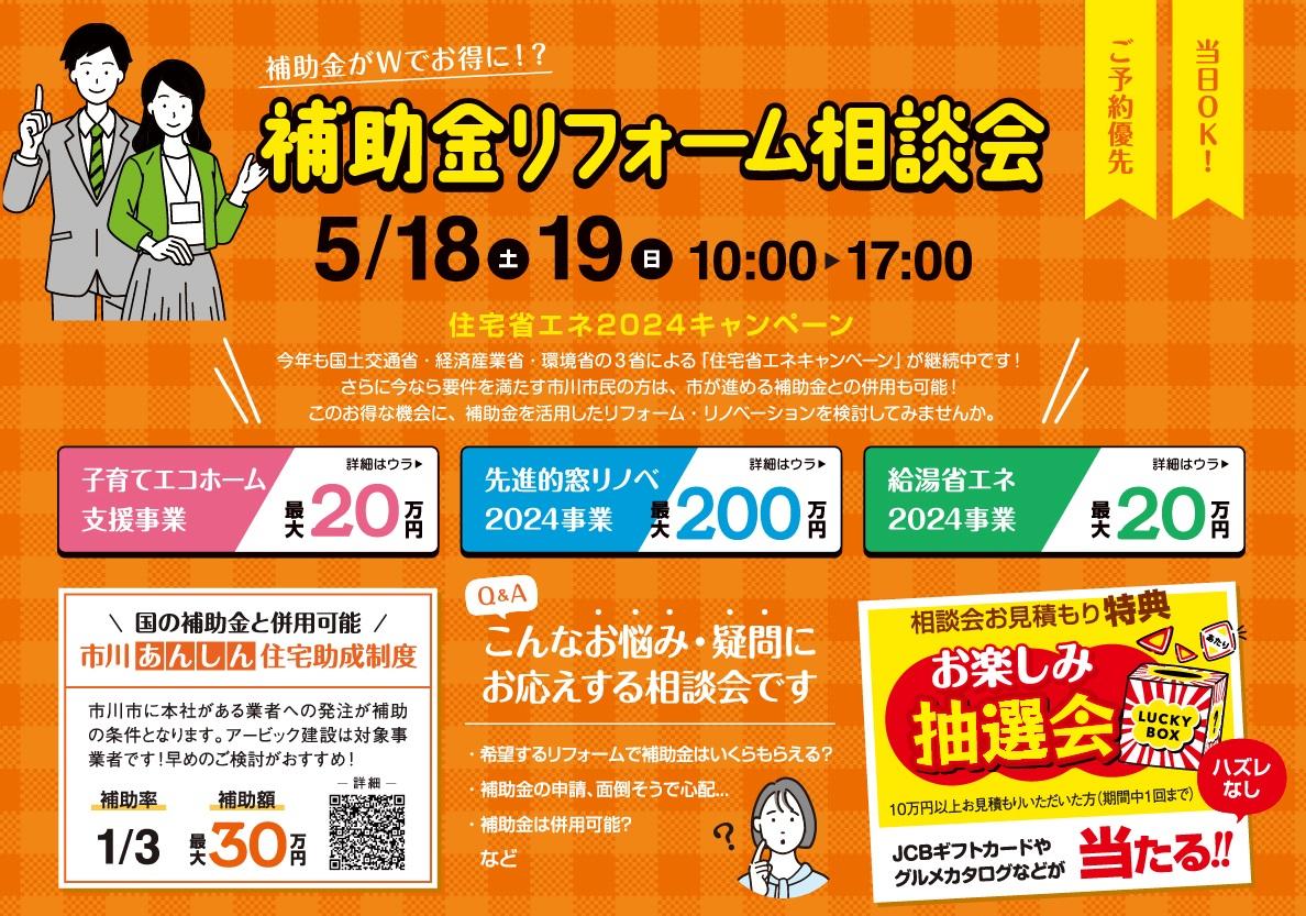 5/18(土)・19(日)に補助金リフォームの相談会を開催します!