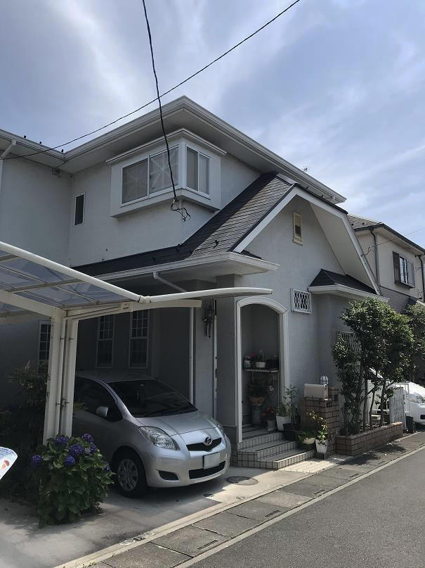 LIXIL運営サイトのリフォームコンタクトより外壁塗装のご依頼を頂きましたお隣のH様からのご紹介となります。 H様の現場調査を行っている際に屋根の状態を見てほしいと相談され、せっかくなので外壁も屋根も全て施工させて頂く事となりました。