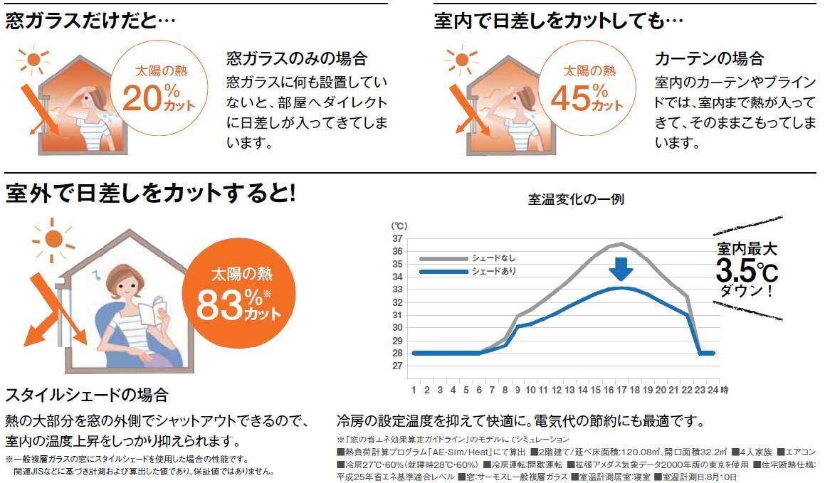 意匠的にもカッコイイですね! これで熱の大部分を窓の外でカット出来ますので室温も下がり、冷房の温度設定も下げられますので、電気代にも良い影響が表れると思います。