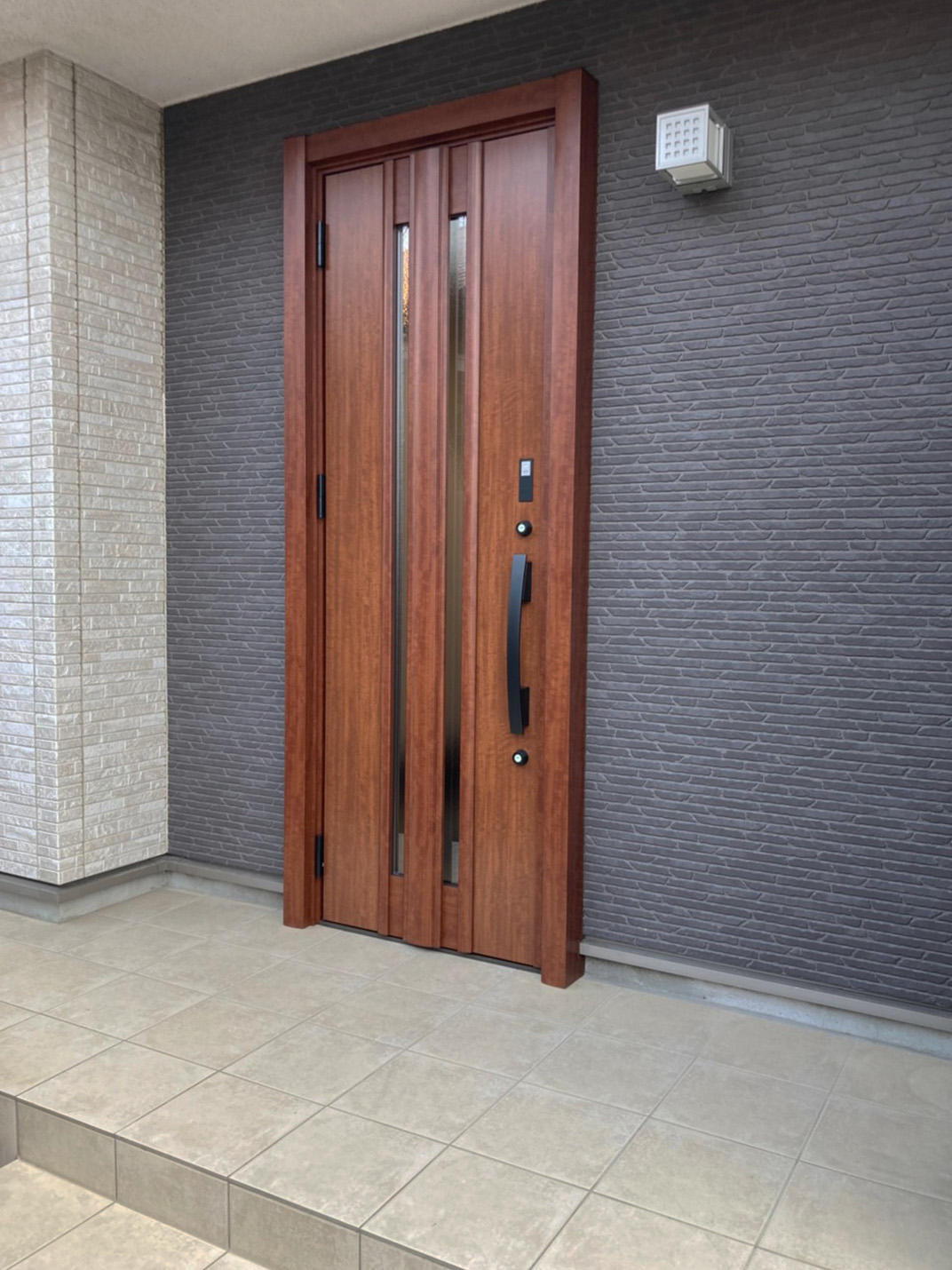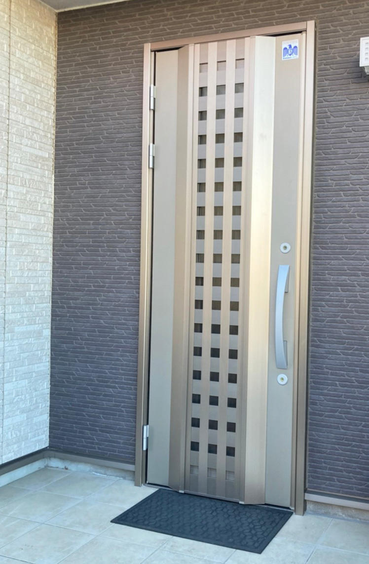 今回は、玄関ドアのみの変更となりました。 「子供が4人いる為、キーレスになり楽になりました」と報告頂いてます。 ドアもご夫婦で選定されて、大変満足頂きました。