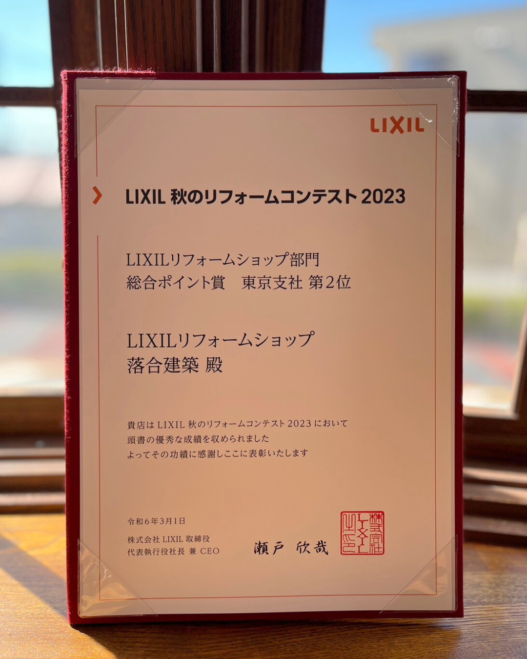 LIXIL秋のリフォームコンテスト2023 LIXILリフォームショップ部門にて