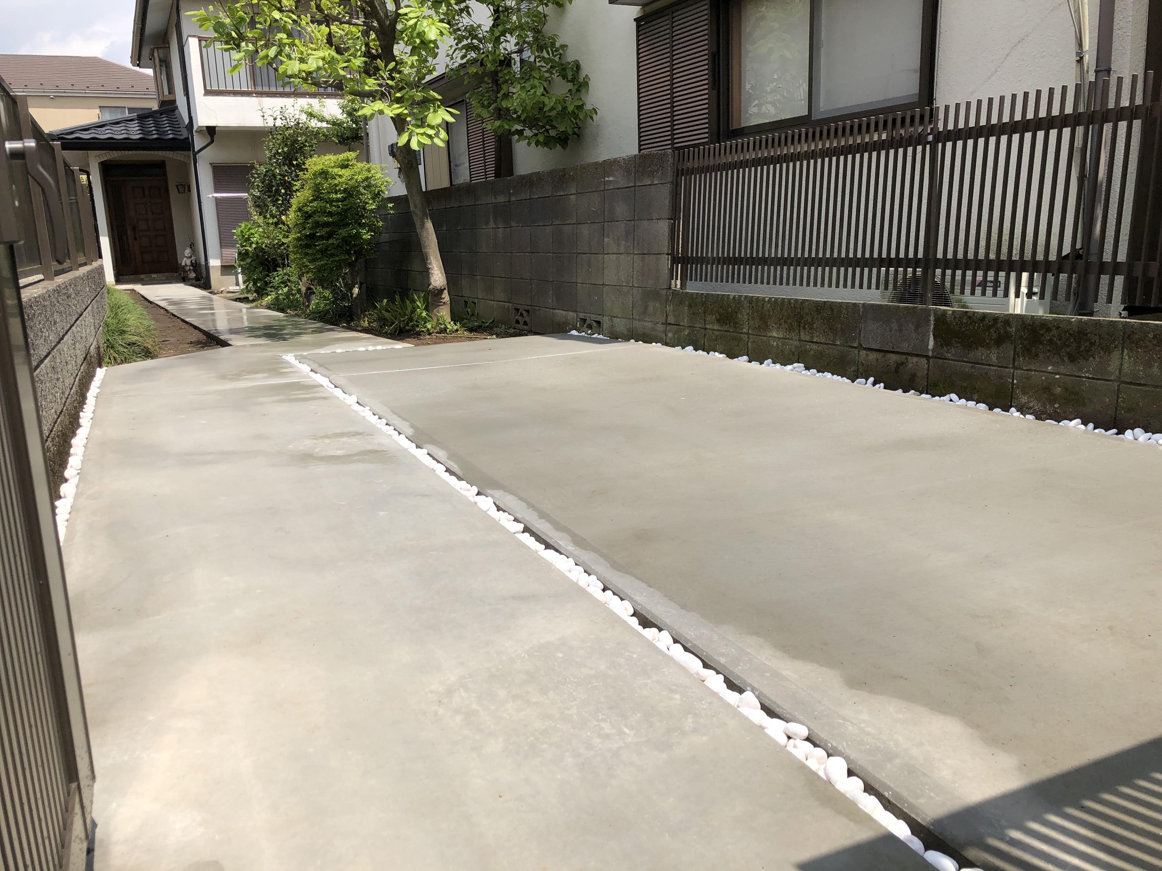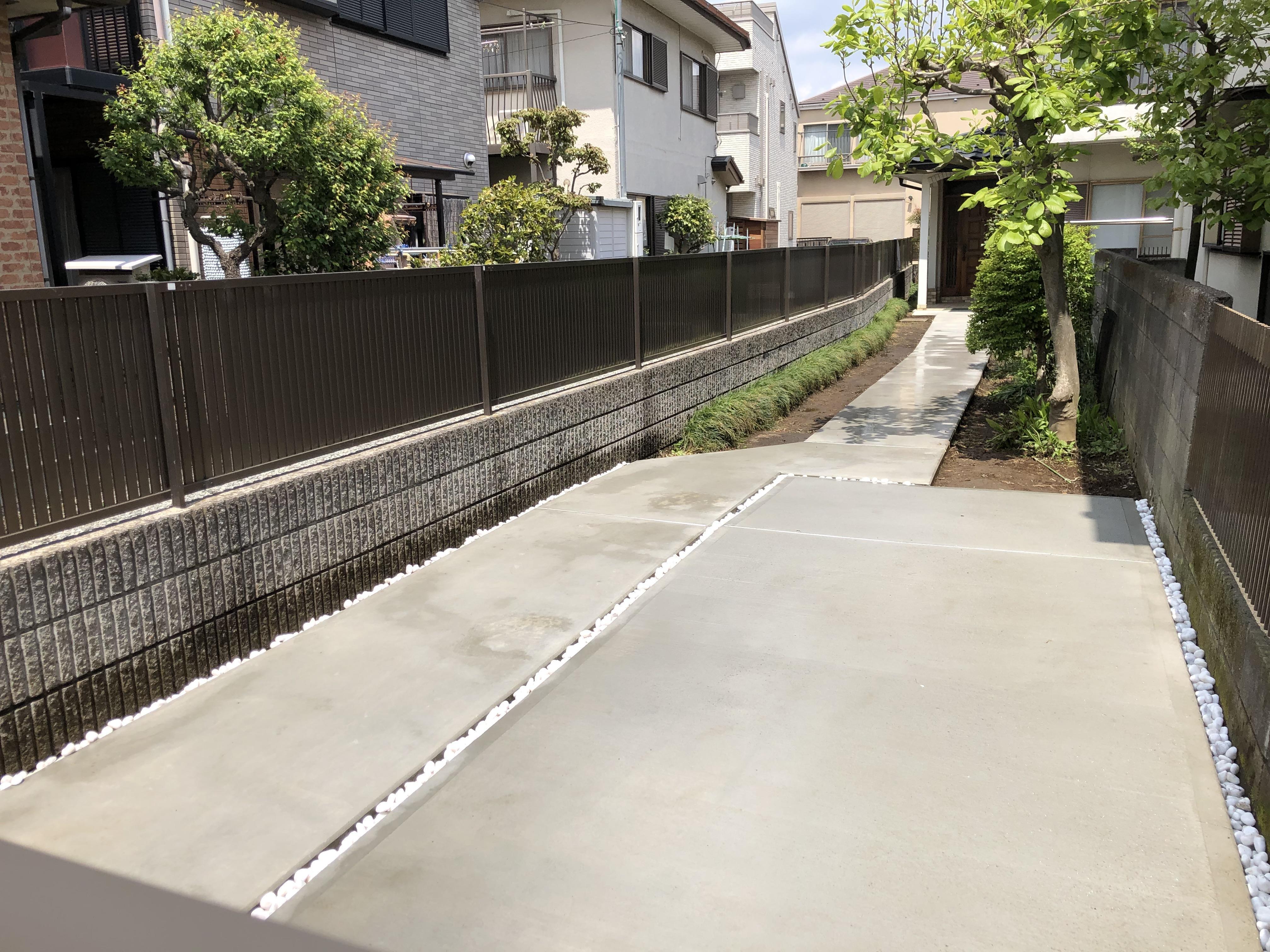 今回、車椅子でも通りやすいようにアプローチと車庫はコンクリートにして、門扉やポストを含めたバリアフリーリフォームを行いました。