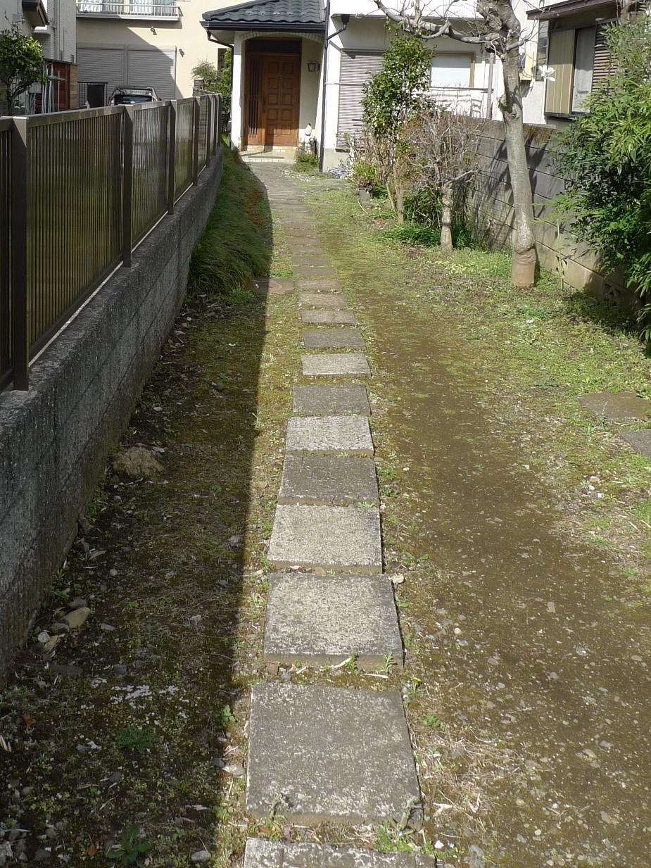 門から玄関まで距離があるお宅で、アプローチは飛び石でデザインされていました。