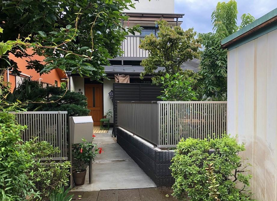 生垣の代わりに「リブロックF」のブロックと「LIXILフェンスAB TR1型」を設置しました。