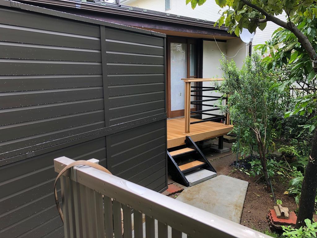 ウッドデッキを新規で設置して、塀やアプローチの工事を行いました。