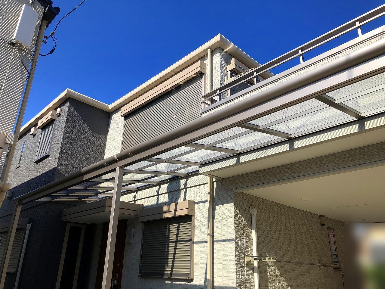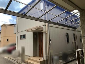車庫前から玄関までのアプローチにテラス屋根を設置しました。