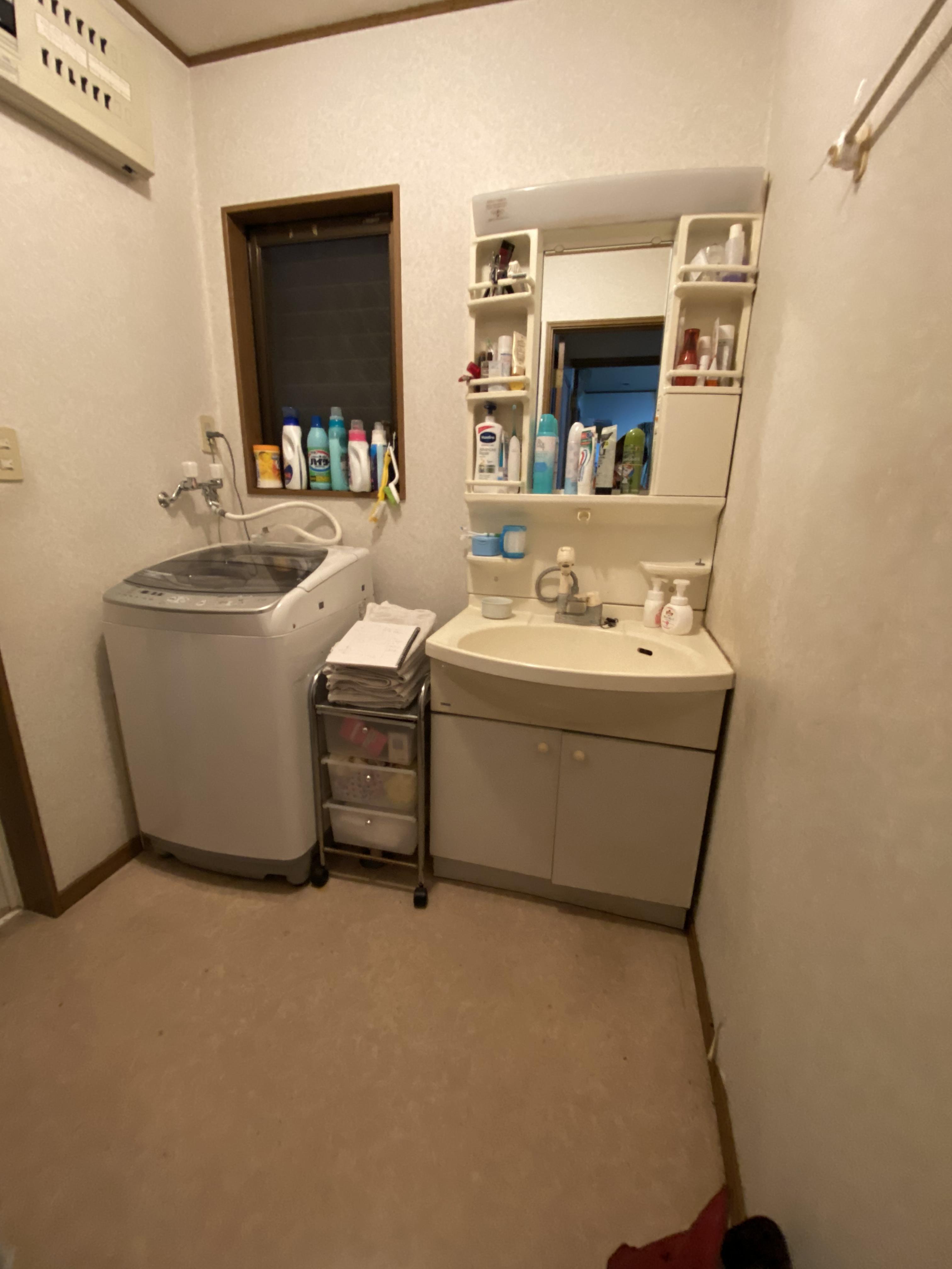 蛇口から少量の水漏れがありました。 これを機会に新しくなさりたいと。 正面の鏡も三面鏡ですので、内部に化粧品も収納でき 奥様は、大喜びです。
