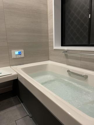 先日ご紹介させていただきましたインテリアモザイクタイルがアクセントのルミシス洗面化粧台と、併せての浴室ご改装です。