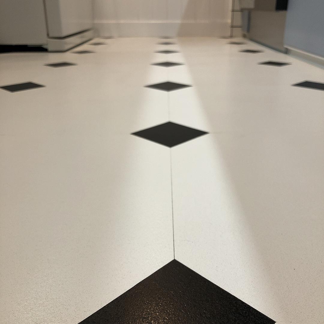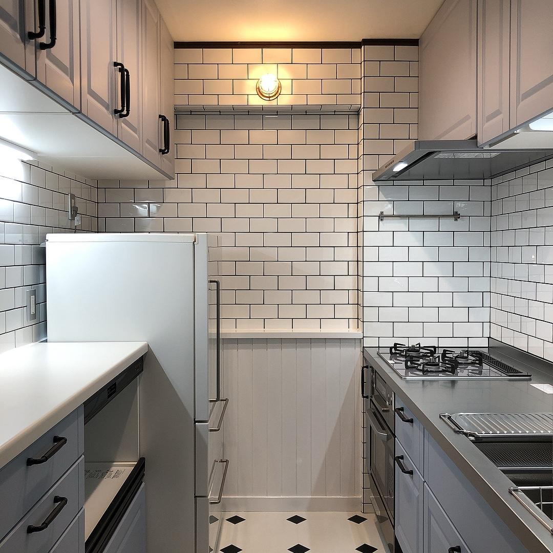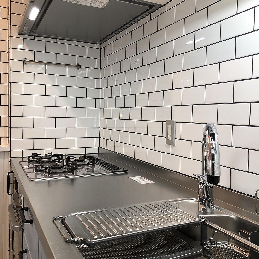 艶のあるタイルの白と目地の黒が際立って素敵です。