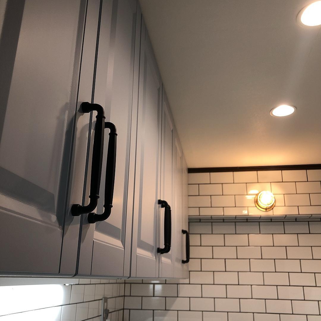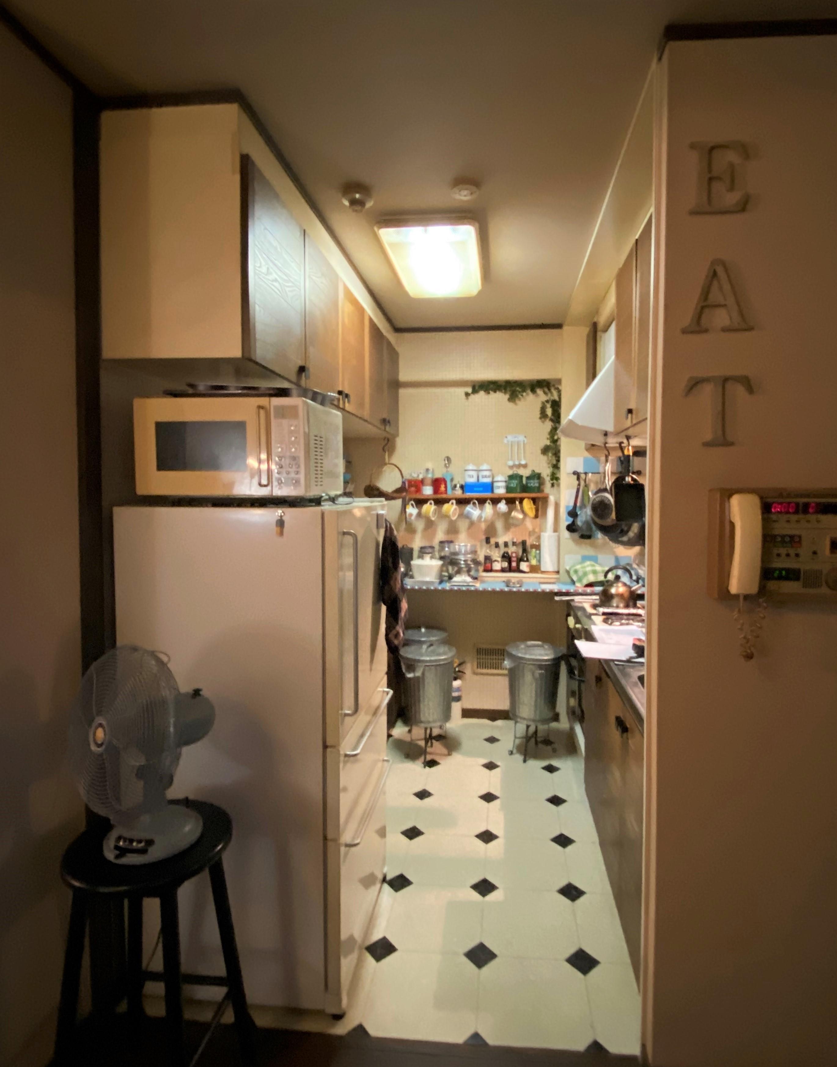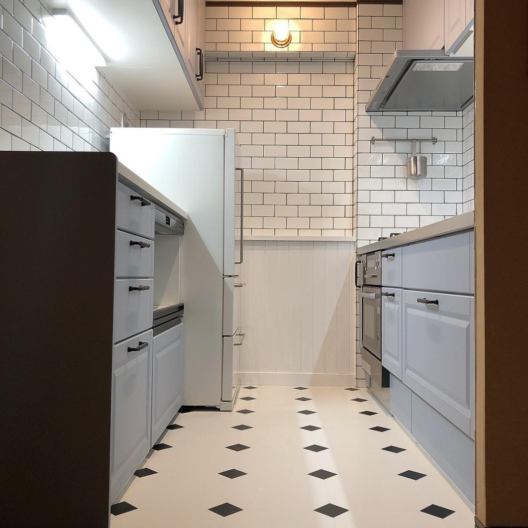 リシェルのシェルブルーと戸手のブラック・・・なんとも言えない雰囲気のあるキッチンスペース。