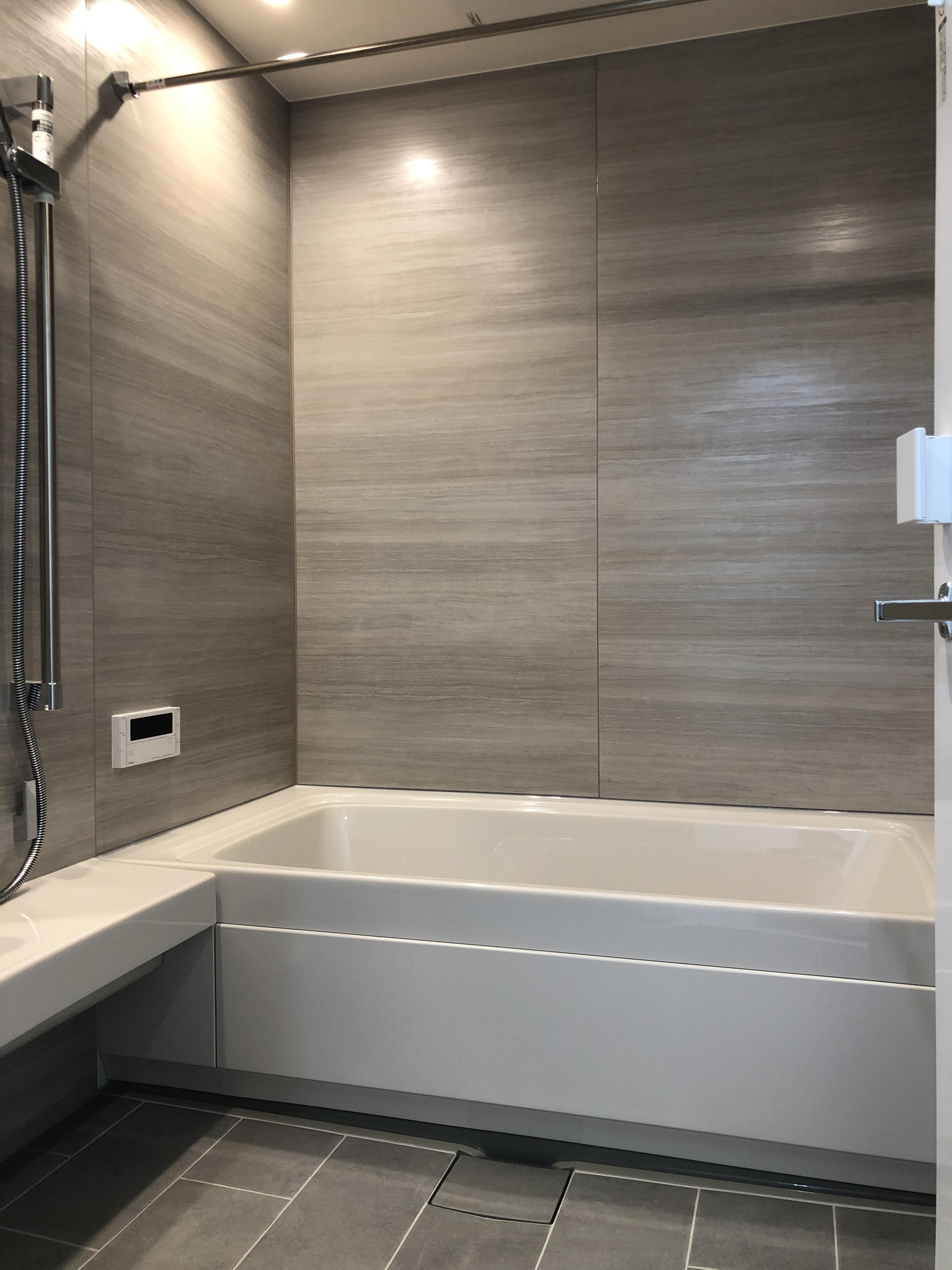 LIXIL人気の浴室スパージュ、この度は浴室内を足元から演出できる石目柄のグランフロアです。3色のラインナップよりライトストーンをご選択。