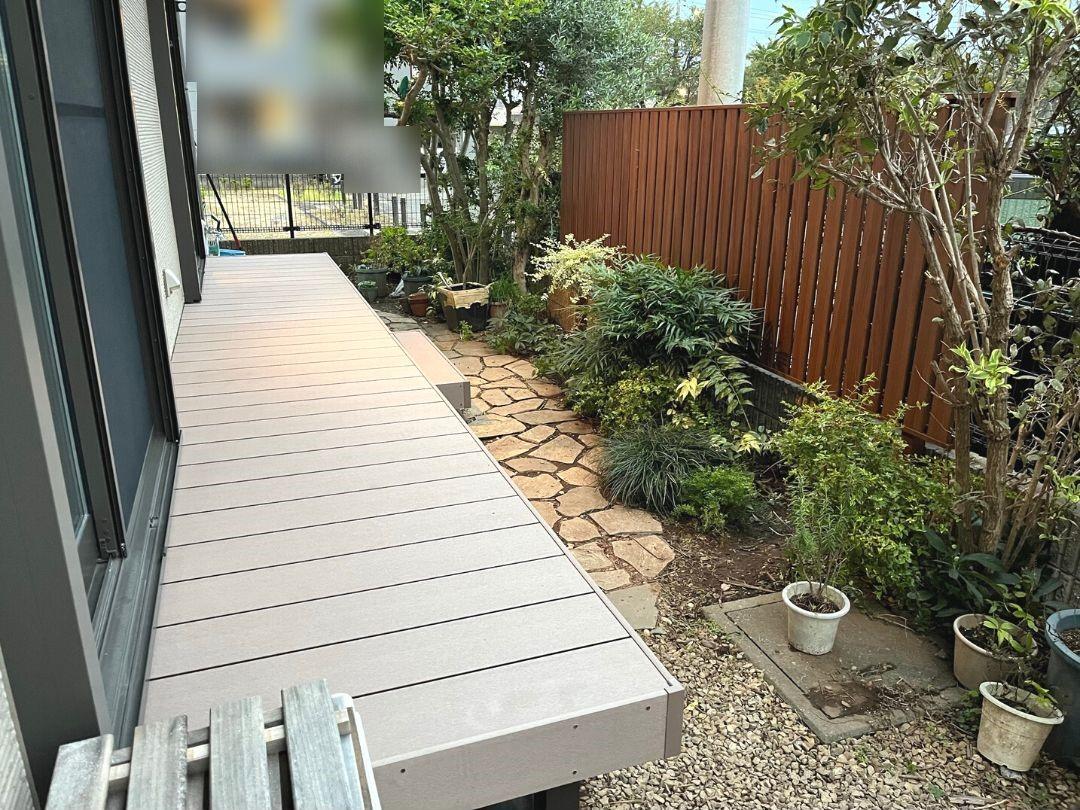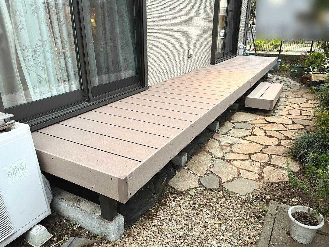 老朽化したウッドデッキを人工木材のデッキにお取替えしました。