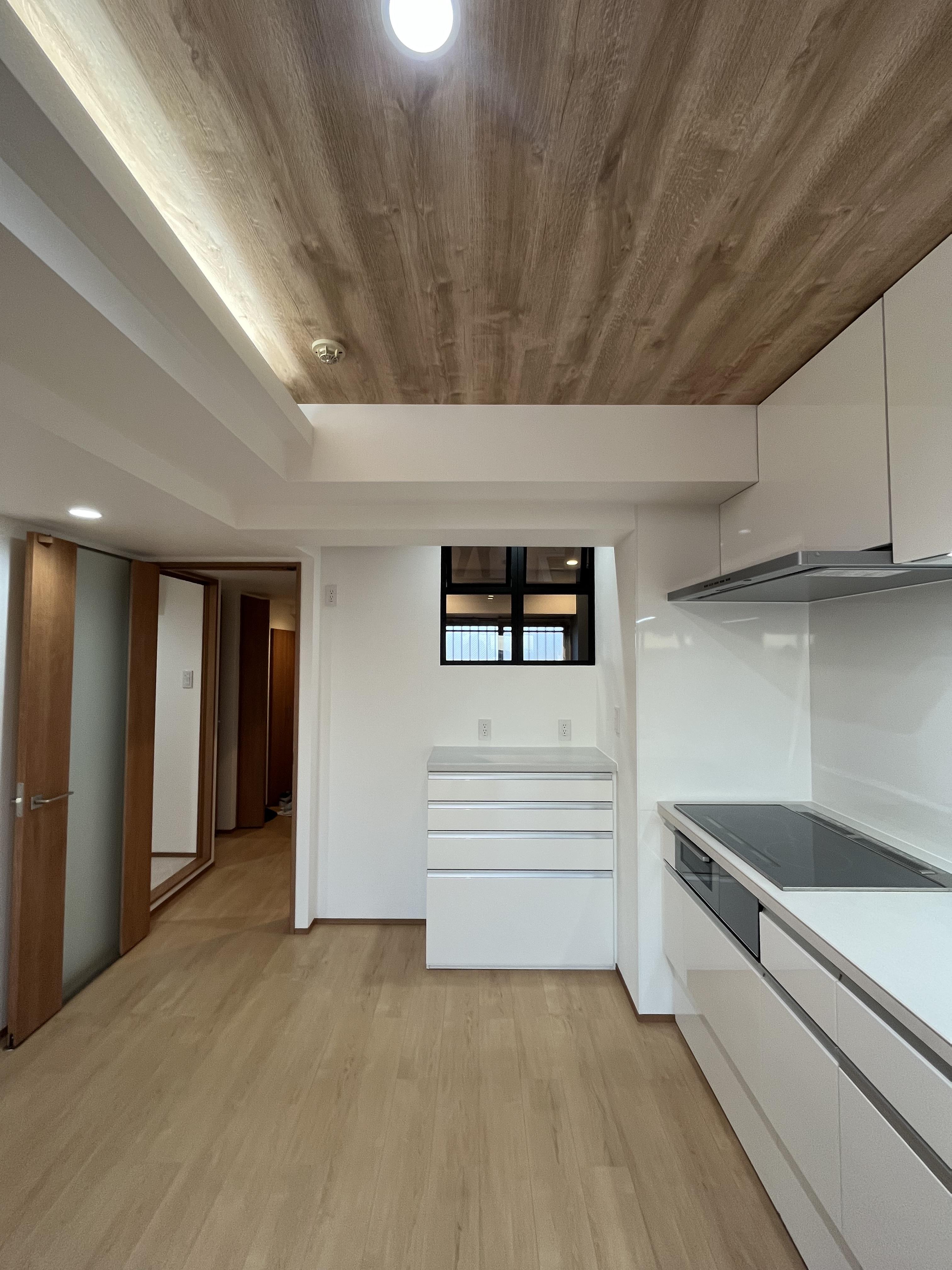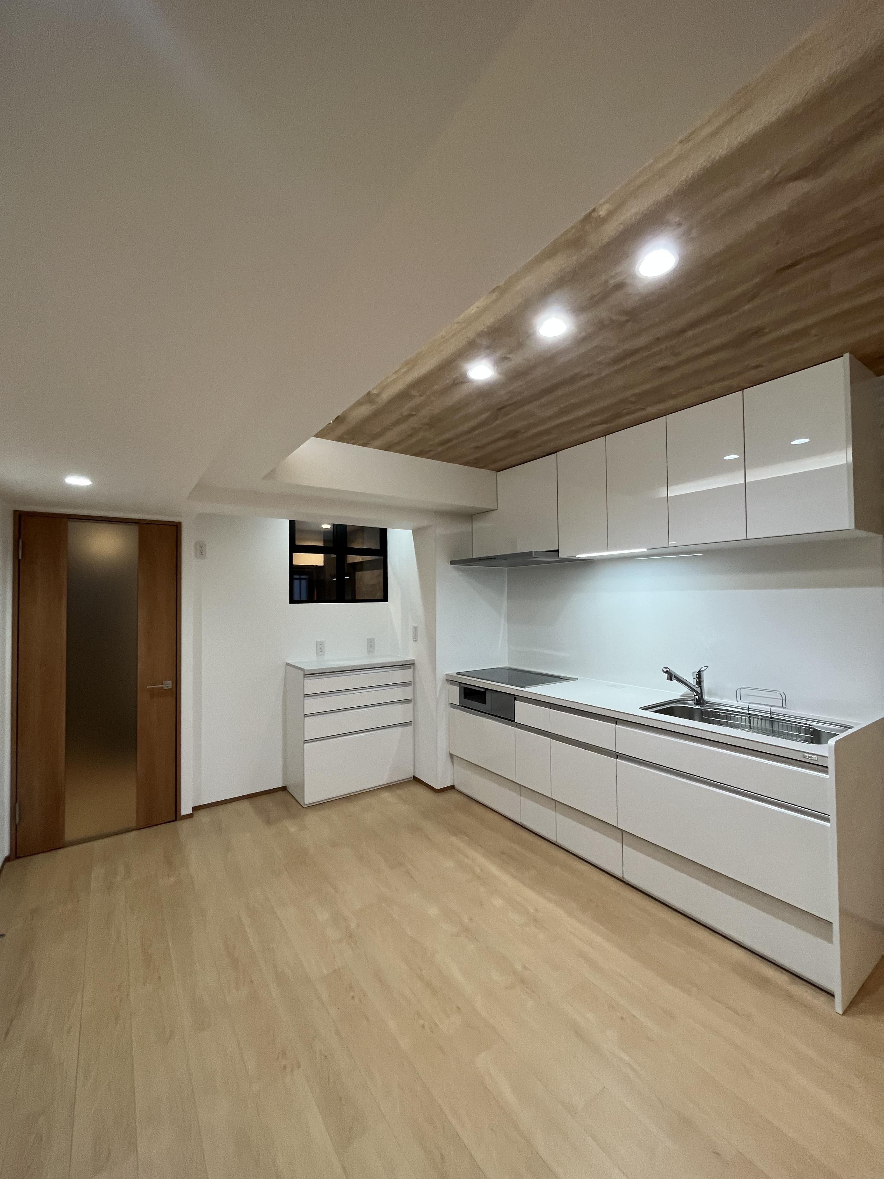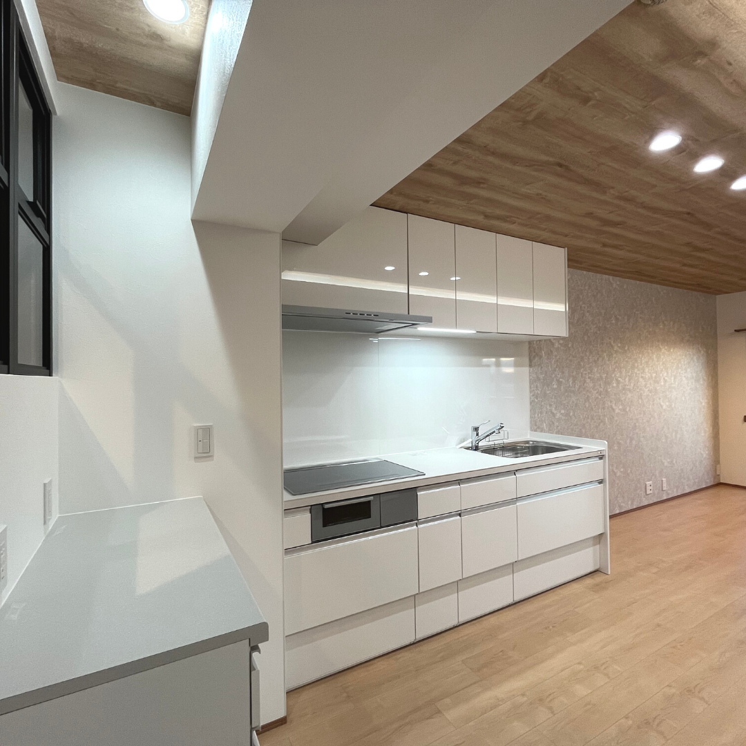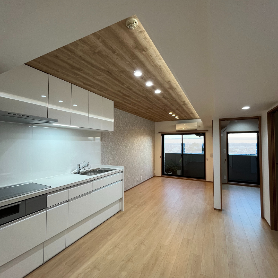 キッチンダイニングとリビングを隔てていた間仕切りを取り払い、隣接した元和室もサイズダウンして、広々としたLDK空間になりました。