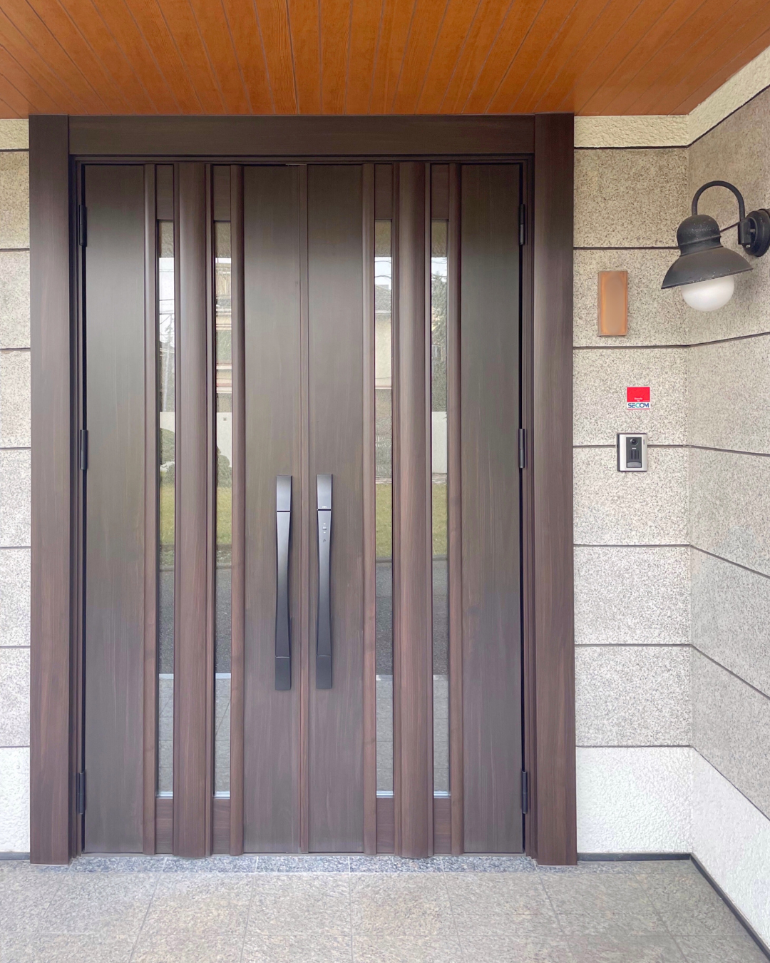 ダークブラウン調のお色味印象は継承しつつ、今回はLIXILの玄関ドア リシェントをご選択。