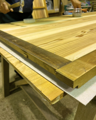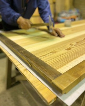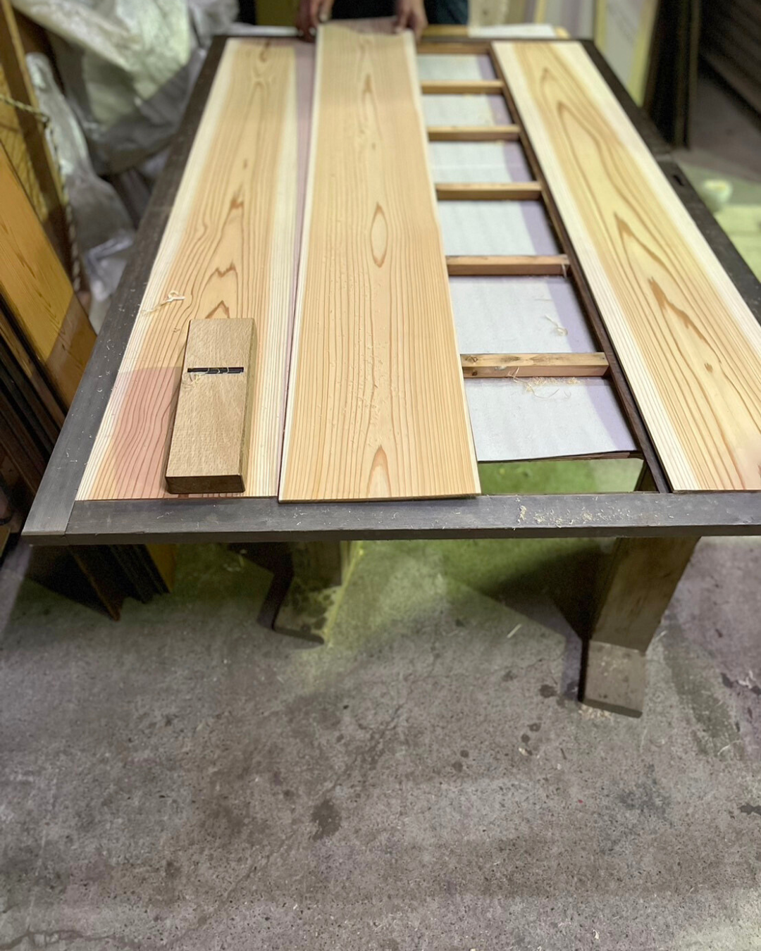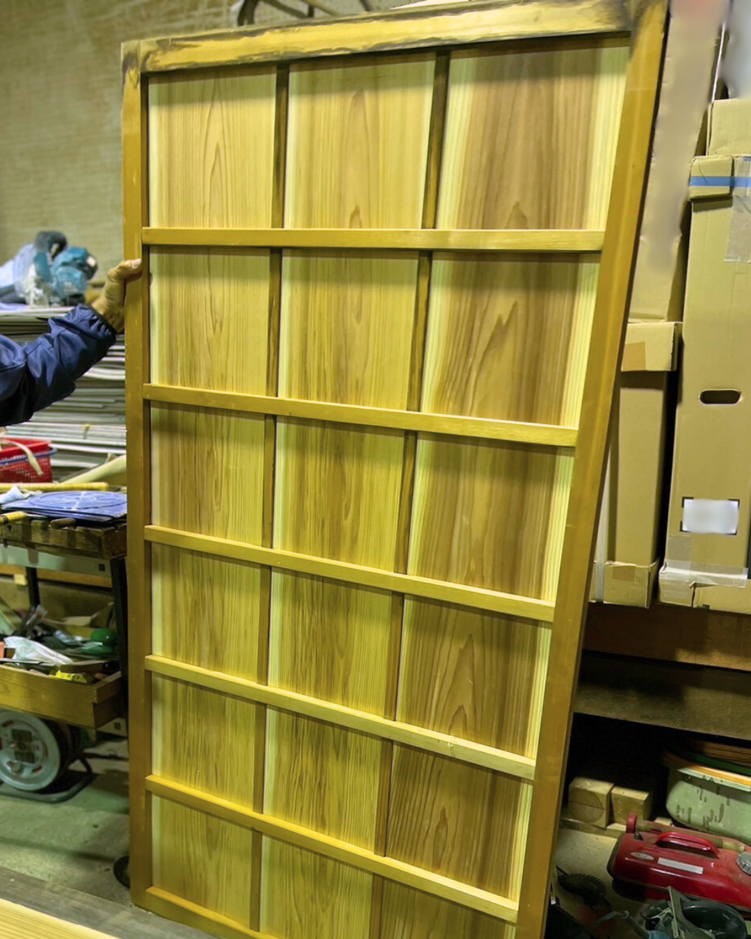 枠は既存のものを再利用、はめ込んだ新しい木材は杉。