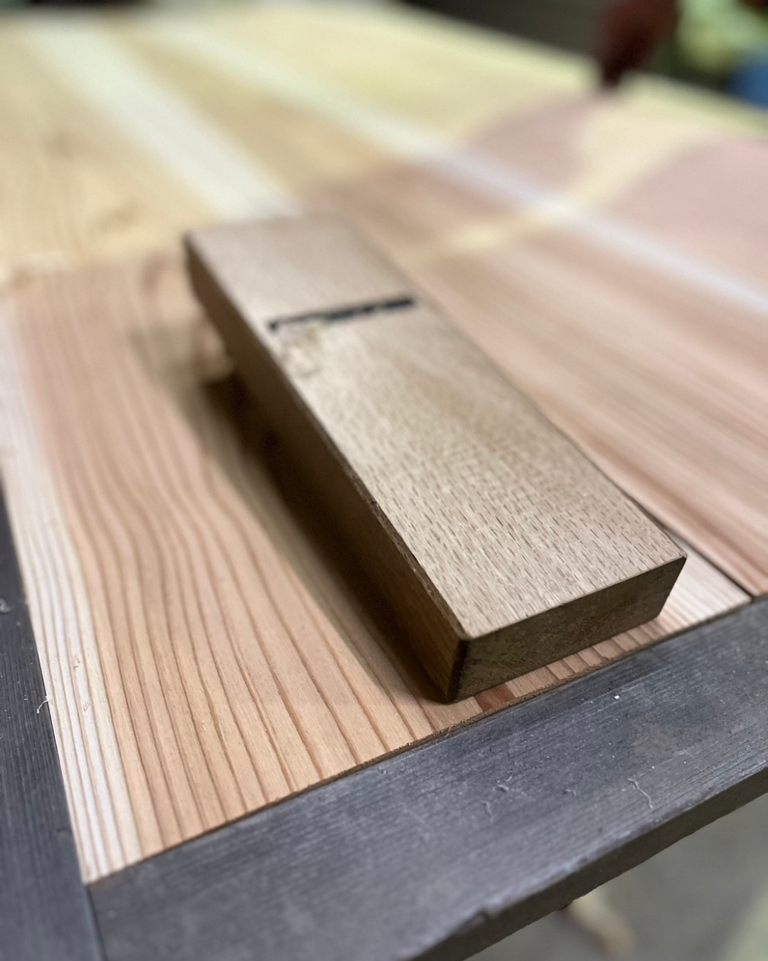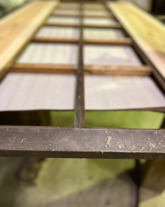 板上にカットし丁寧に鉋をかけてから、はめ込み釘打ち、綺麗な格子状に元通りです。
