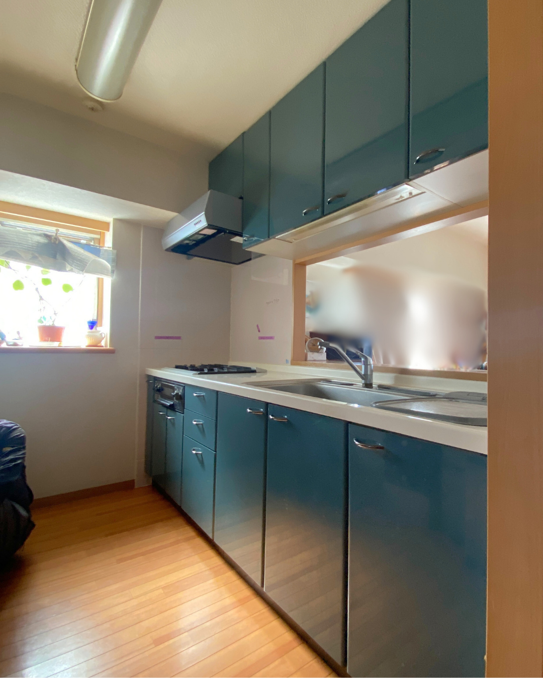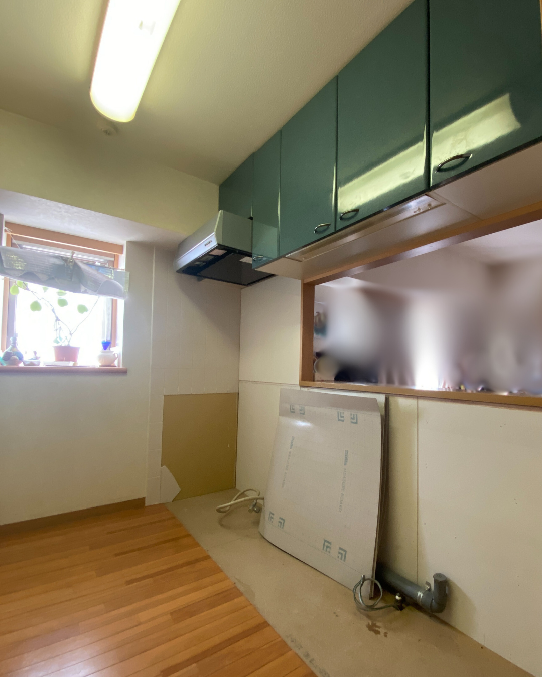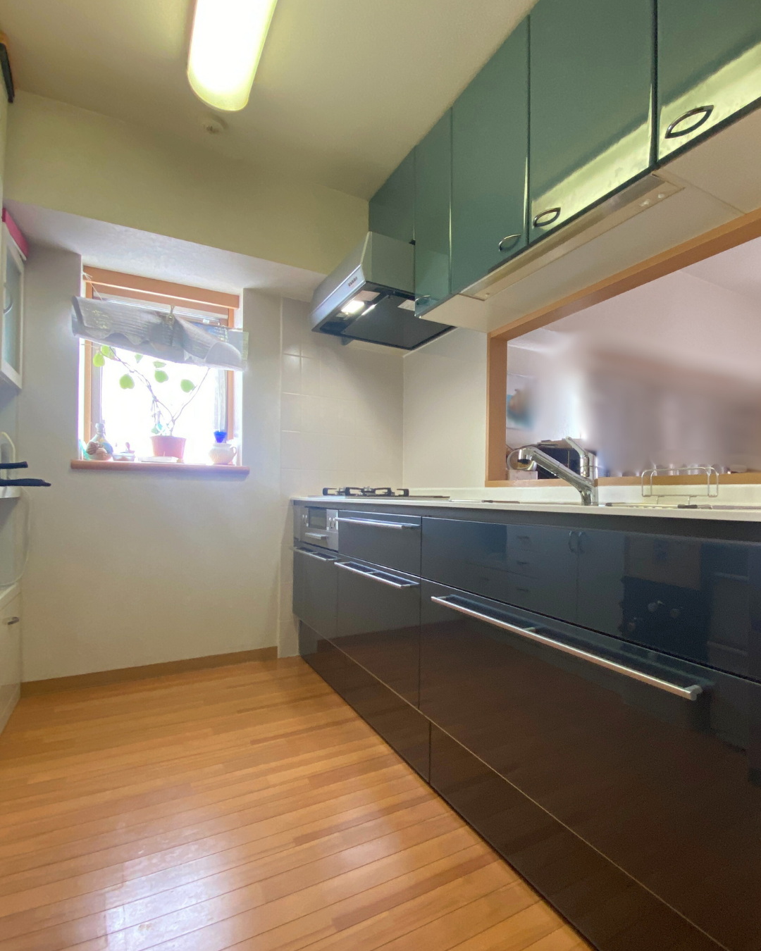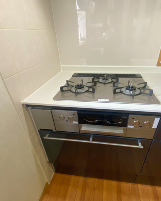 ウォールユニット棚とレンジフードはきれいに残したまま、お色味と雰囲気をつないでご選択されたシステムキッチンです。