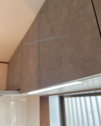 キッチン背中側の壁面も、おかげ様で魅力あまたに仕上がりまして