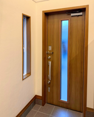 玄関ドアはLIXILジェスタ2 のチェリーウッドです。