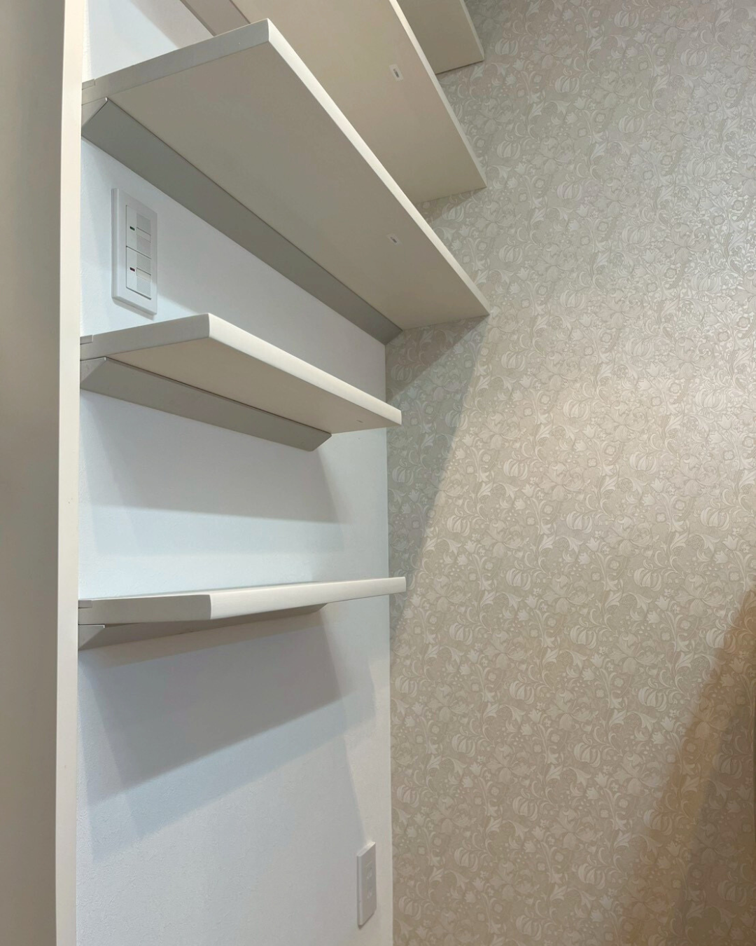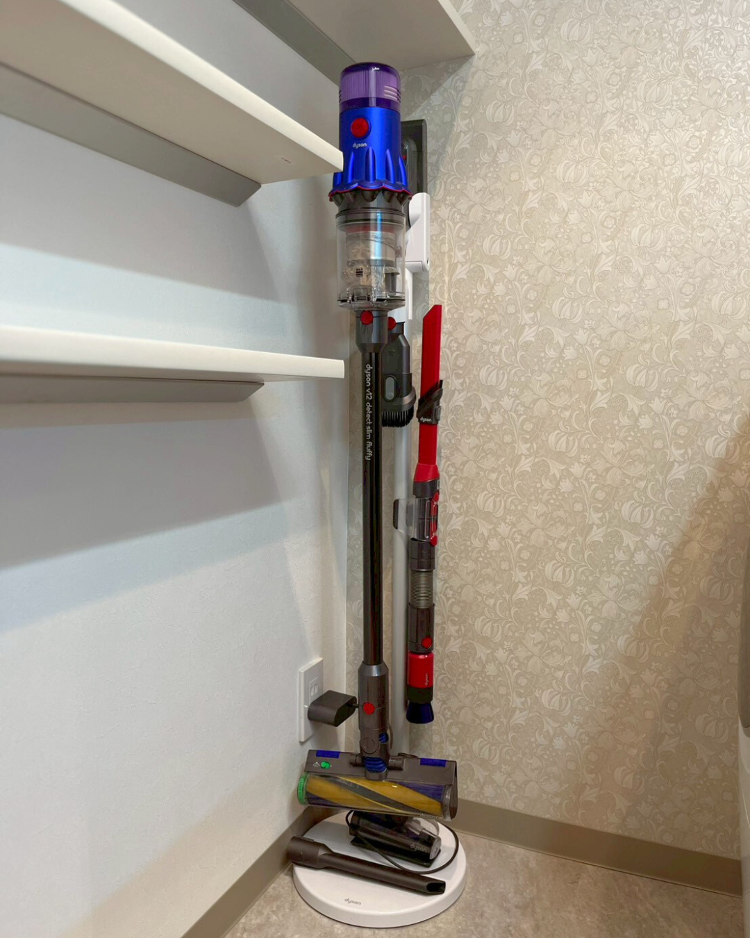 背面収納は、使い勝手良く造作しました。掃除機のストック場所もしっかり確保し、すっきりジャストフィット!