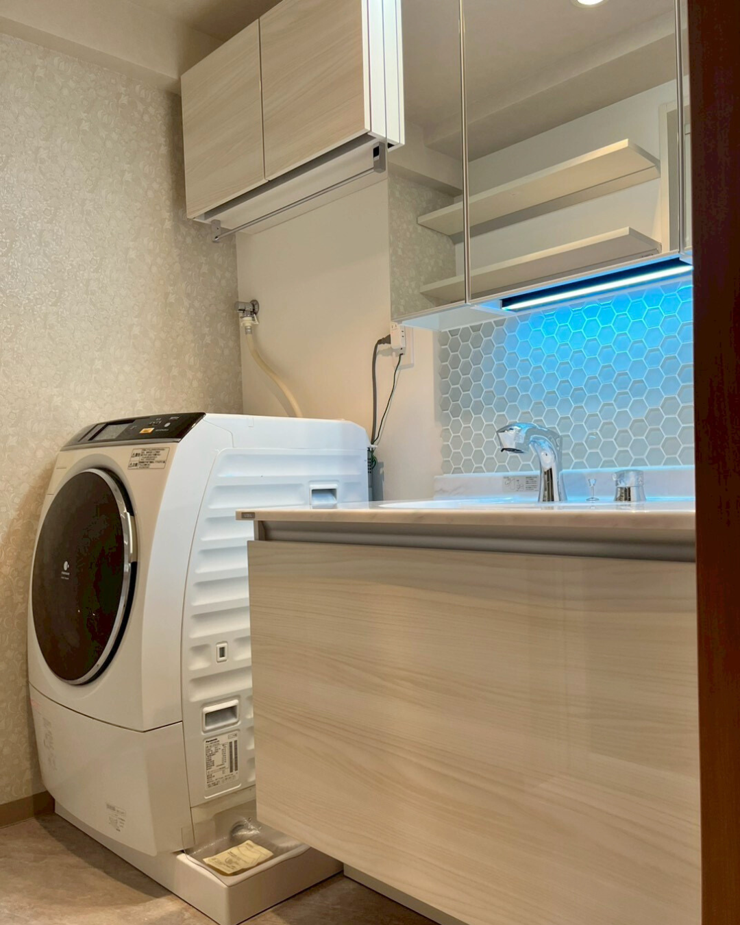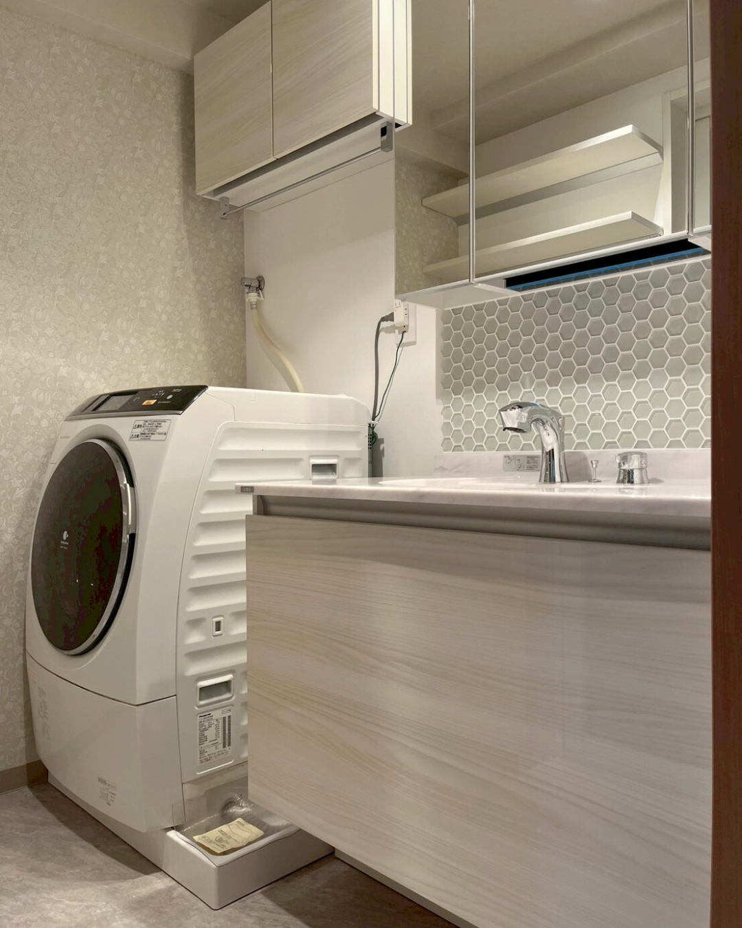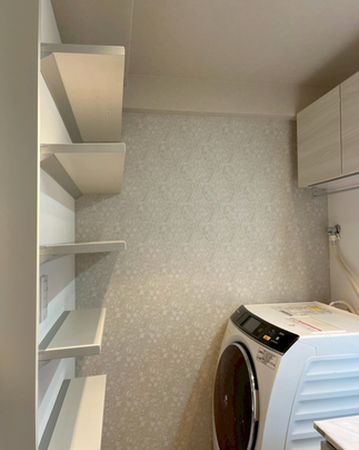 ランドリーキャビネットの扉カラー:クリエアイボリー(特注品)