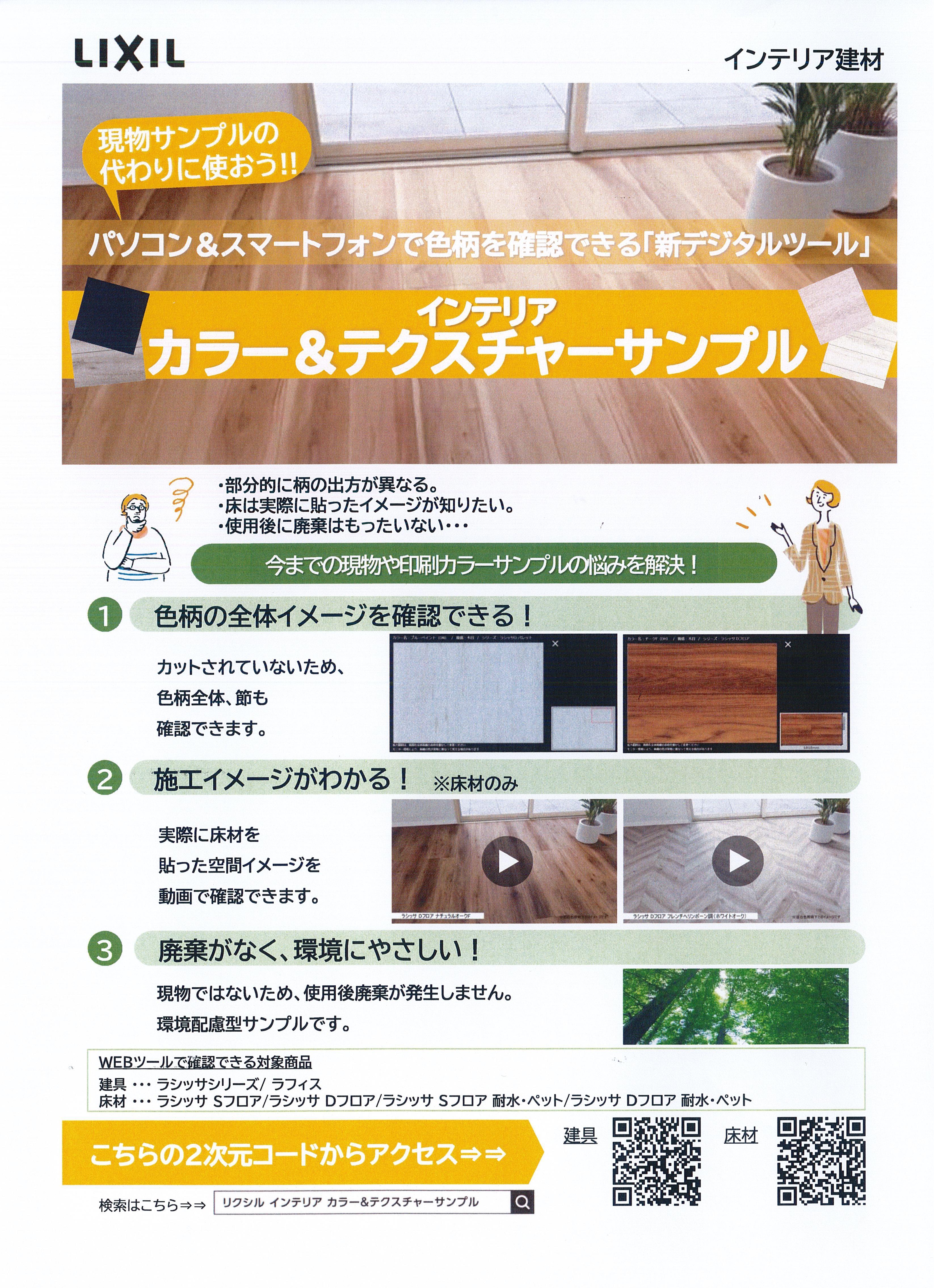 ☞LIXIL | リビング・寝室・居室 | カラー&テクスチャーサンプル