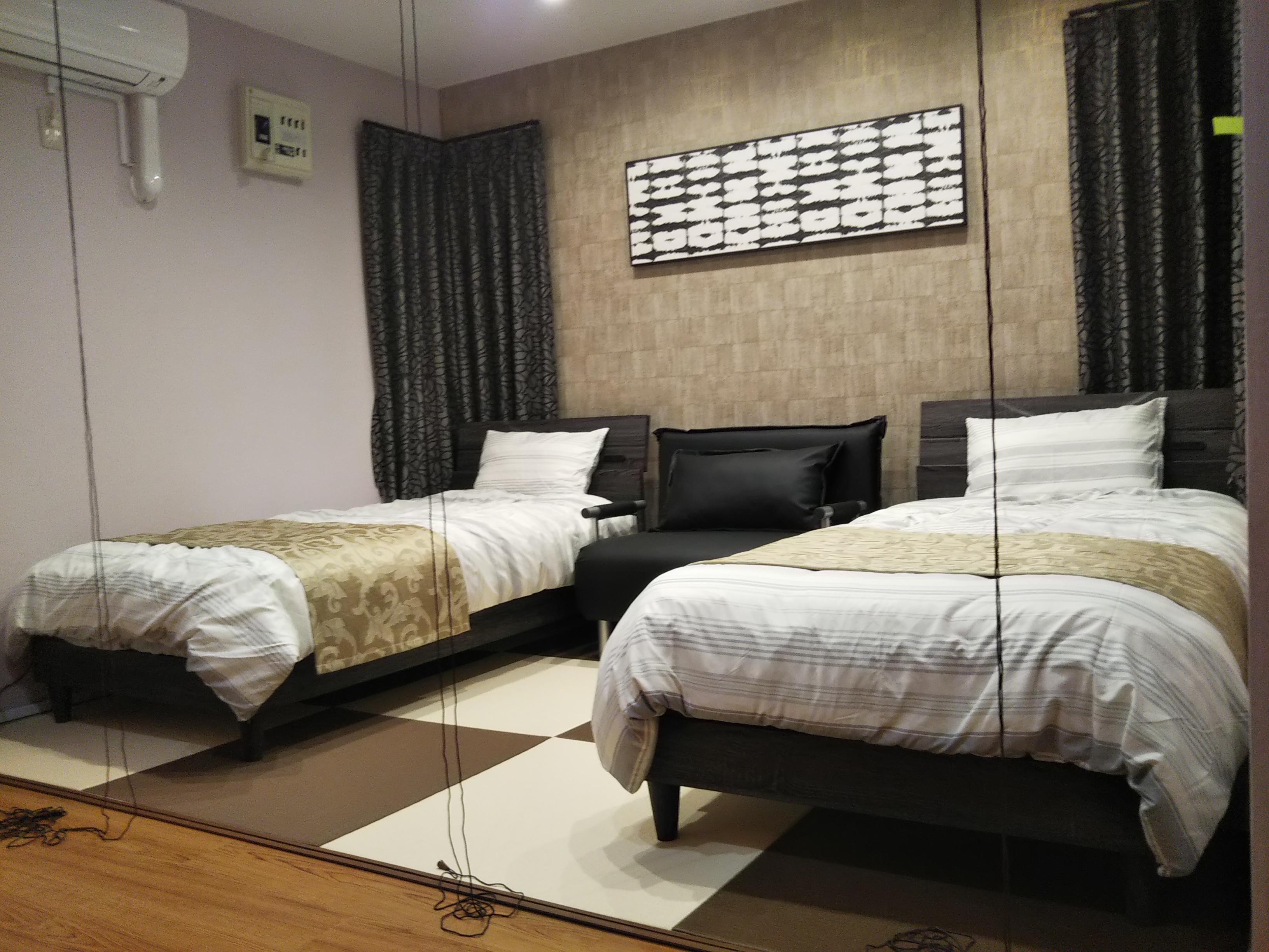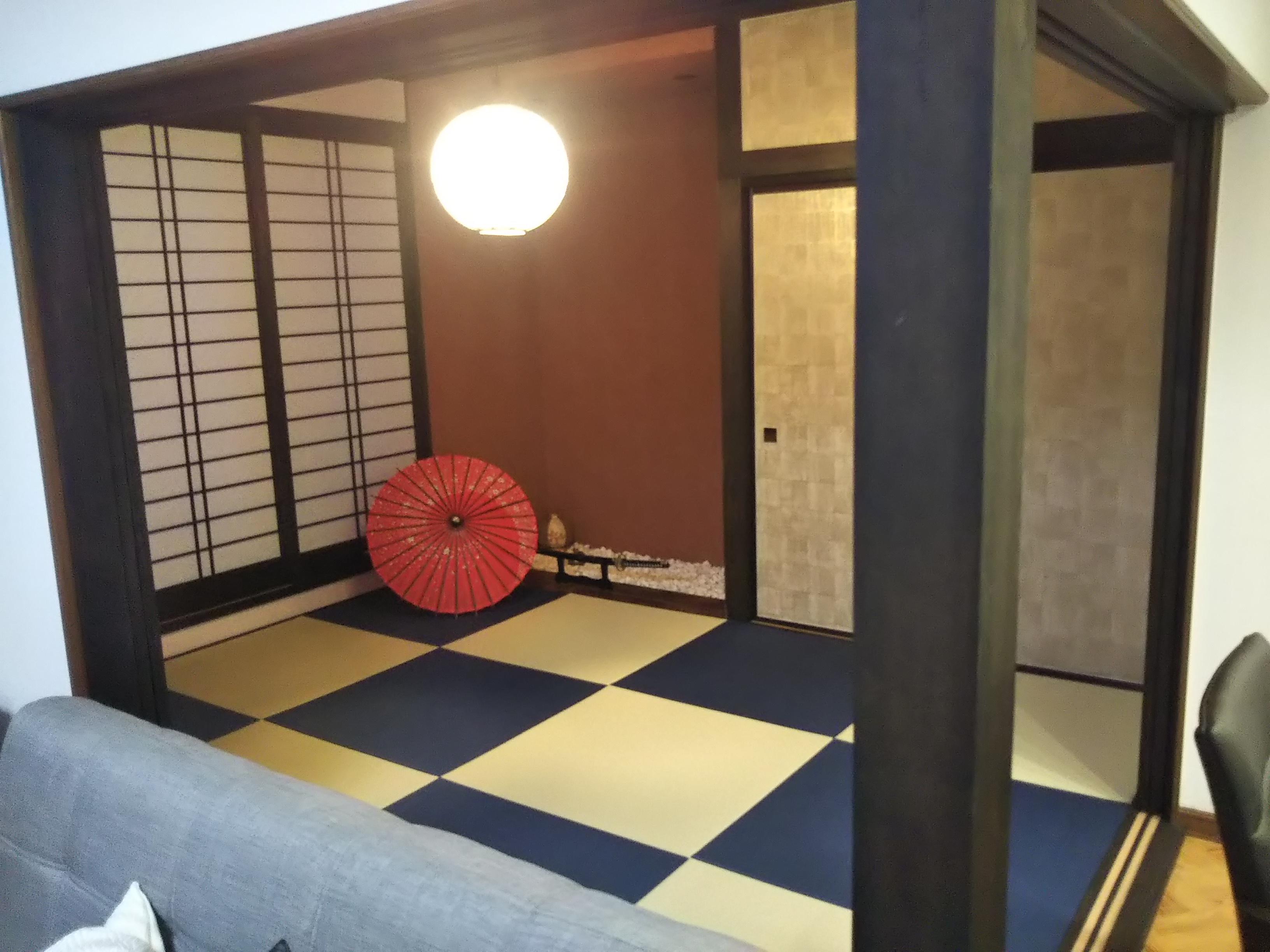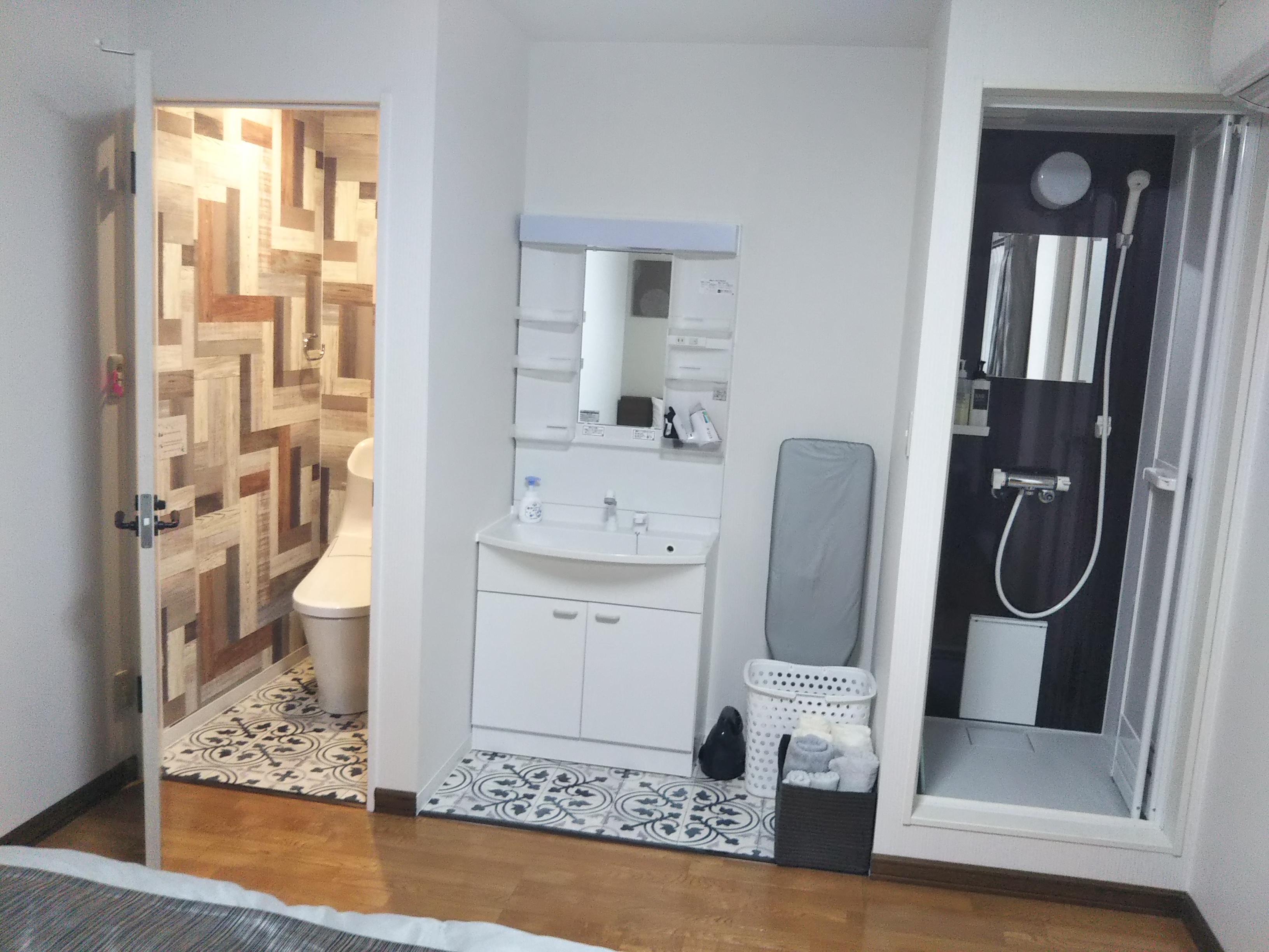 ホテルのような設備を12畳の洋間へ配置致しました。施行にあたり、もともとあったクローゼット収納を解体し、その範囲で収まる化粧台・トイレ・シャワーユニットなどを設置致しました。