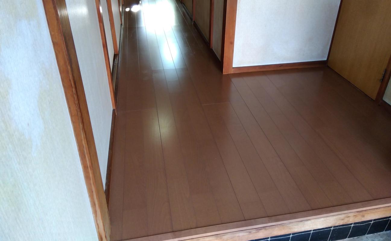 現状の床の上に新しい、うすい板を貼り、簡単にキレイに仕上げました。
