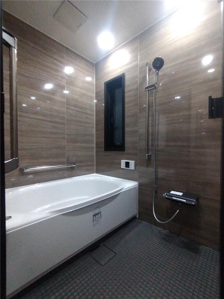 古くなった浴室と給湯器の交換を ご依頼いただきました。 壁のカラーはウォールナット、 床のカラーはグラニットグレー、 落ち着いた雰囲気に仕上がりました。 ワイドレバー水栓はどの角度からも フィットして操作しやすくなってます。
