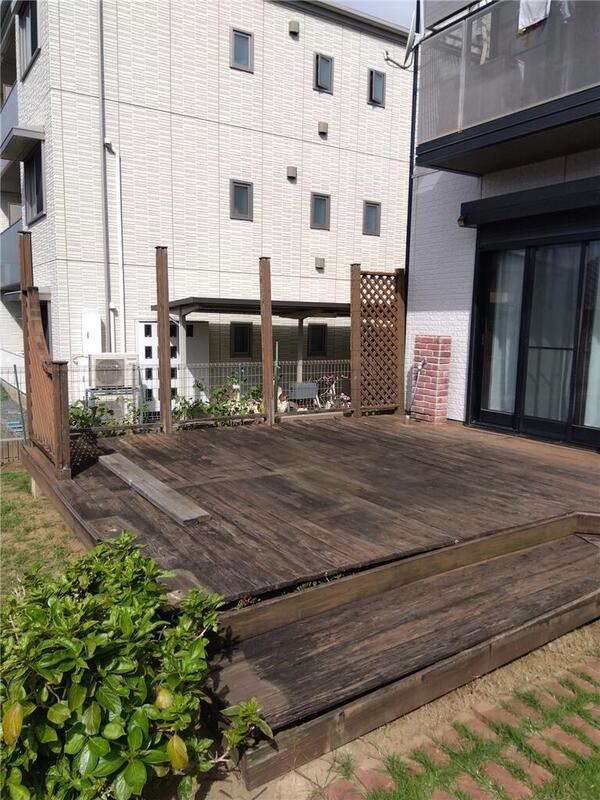 古くなったウッドデッキのリフォームです。 リクシル 樹ら楽ステージを採用。