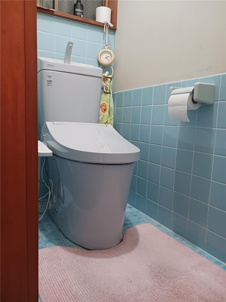 築30年のトイレをアメージュに交換されました。 アクアセラミックでお掃除ラクラクな上、従来の約69%も節水可能です。
