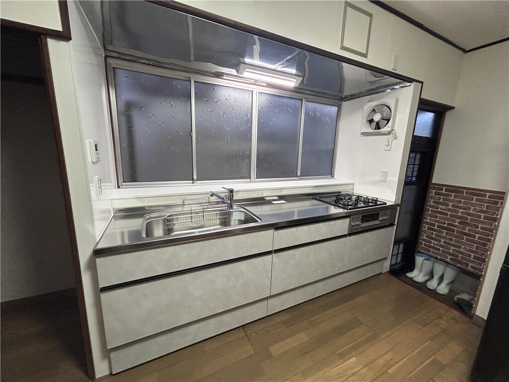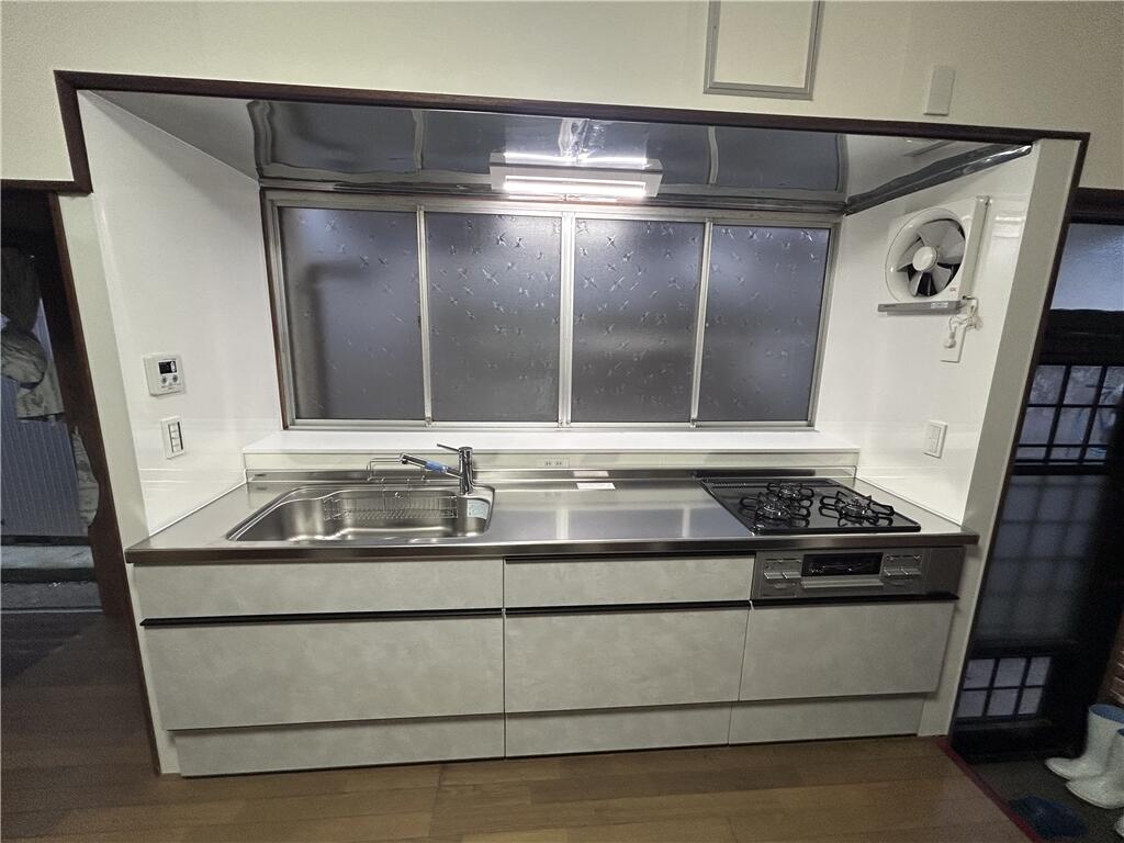 築35年以上のキッチンリフォームです。 シエラSはシンプルで使いやすく、飽きの来ないデザインとなっております。 お色もホワイトスタッコ(つや消し 抽象柄)をお選びいただき、キッチンがグッと明るくなりました。